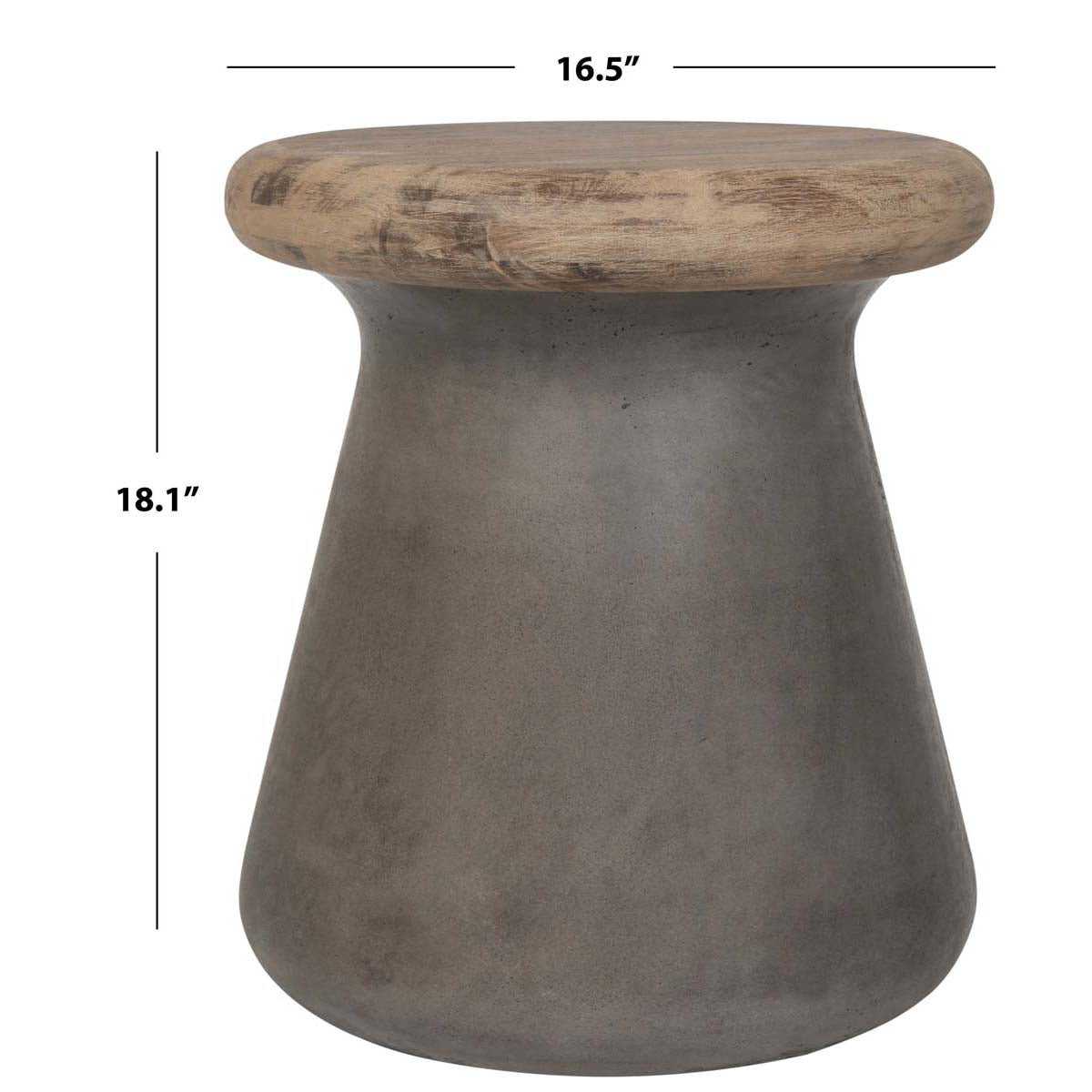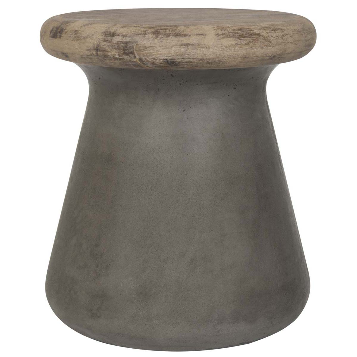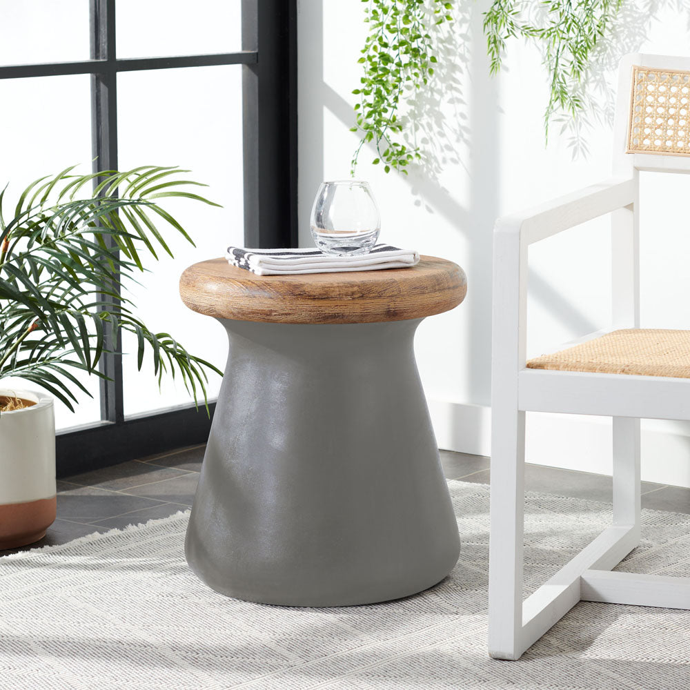 Designed to evoke a modern flair, the contemporary concrete Button accent table combines form and function. Crafted of an acacia wood top and a rich dark grey base, this piece lends chic character to any space. Perfect for indoor and outdoor use.