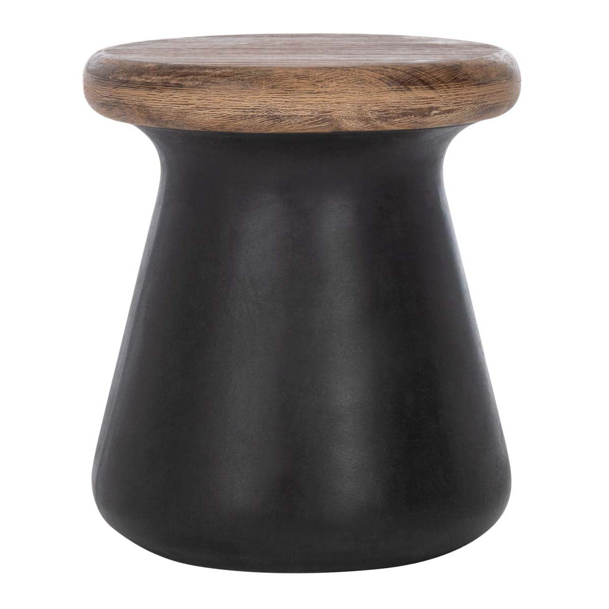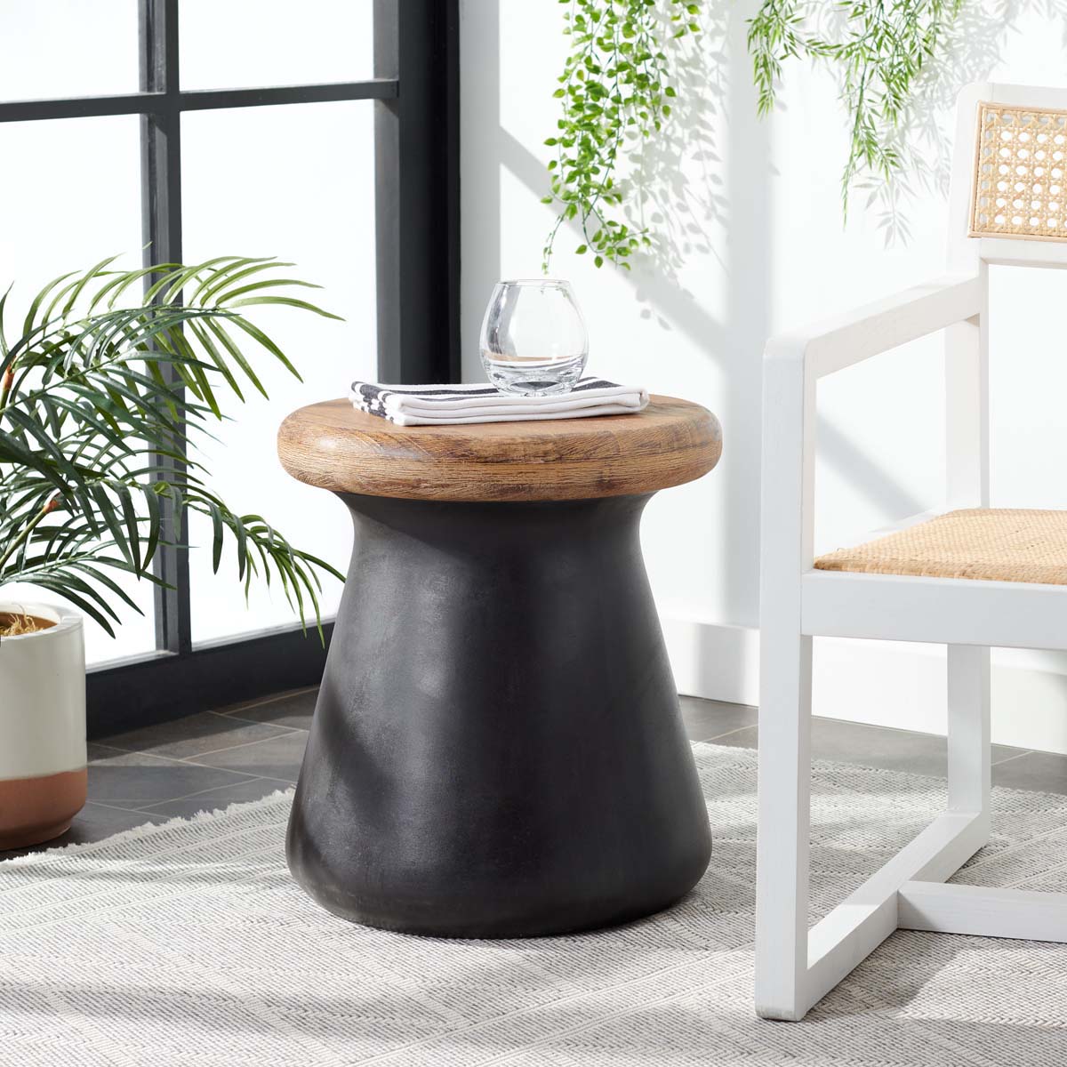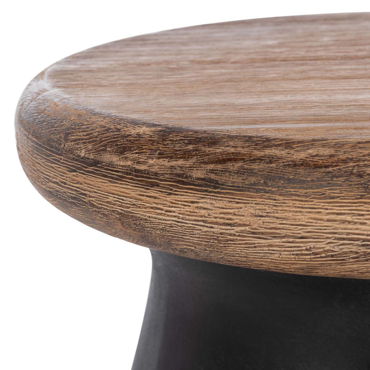 Designed to evoke a modern flair, the contemporary concrete Button accent table combines form and function. Crafted of an acacia wood top and a rich dark grey base, this piece lends chic character to any space. Perfect for indoor and outdoor use.