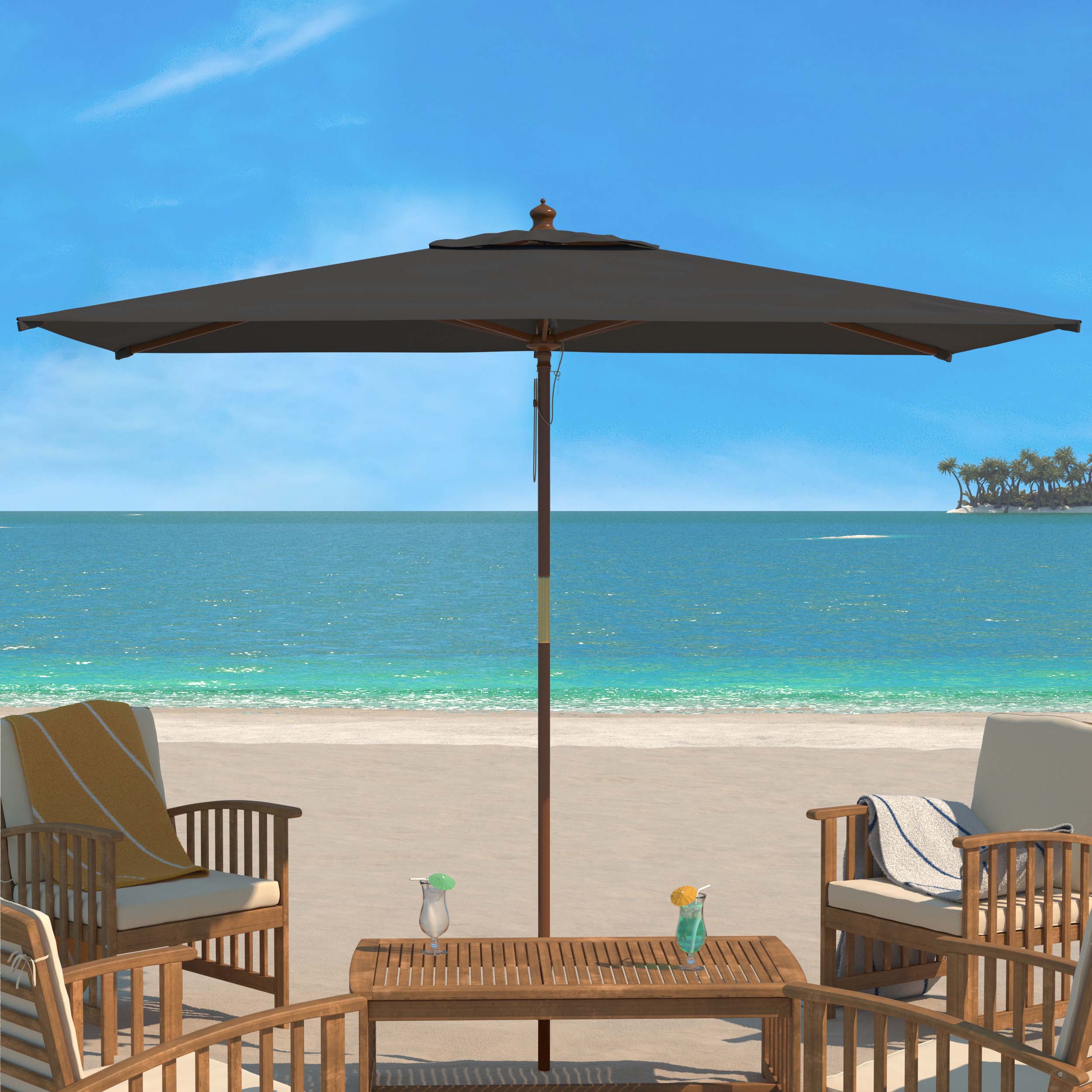 Aklin 6.5Ft X 10Ft Rectangle Wooden Pulley Market Umbrella (No Tilt) | Safavieh - PAT8309