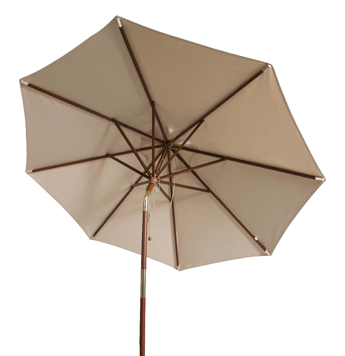 Cannes 11Ft Wooden Pulley Market Umbrella | Safavieh - PAT8109