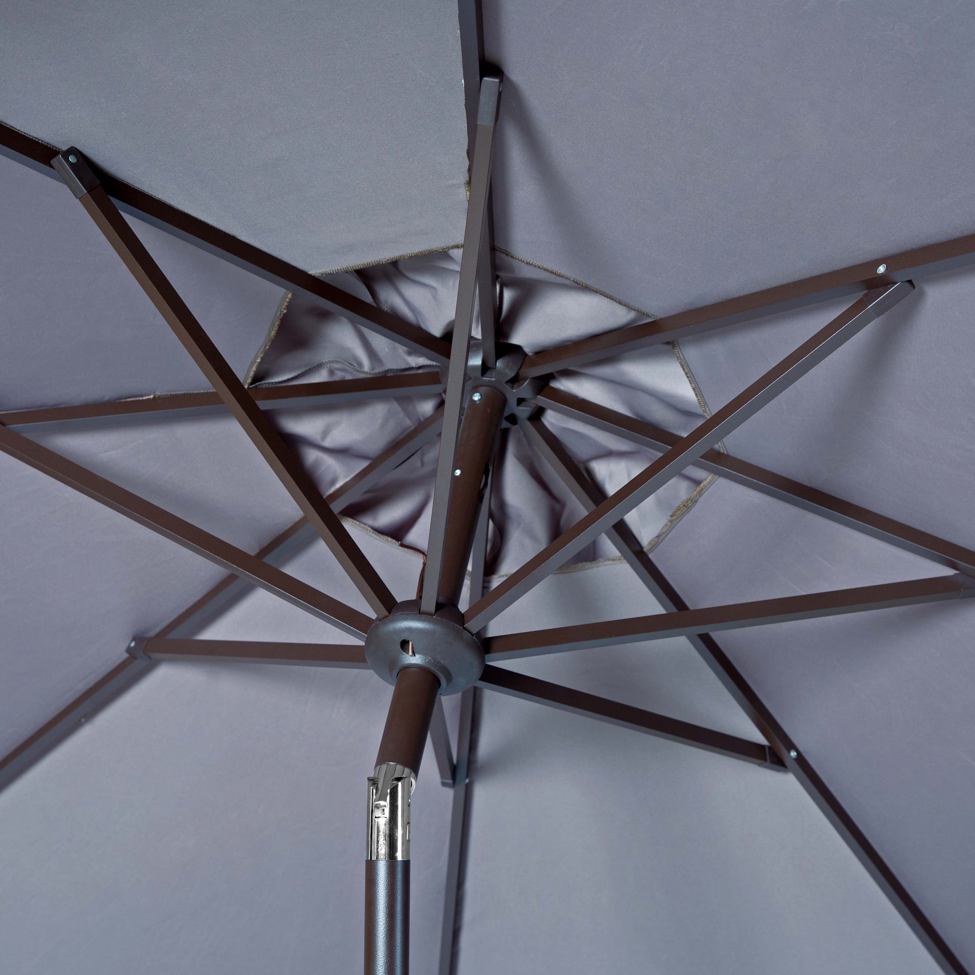 Summer afternoons at Mayfair's private member's club inspired this posh eleven-foot crank umbrella. Its classic fabric is paired with white fringe for a touch of whimsy and exotic style. Ideal for cocktails by the pool or afternoon delights.