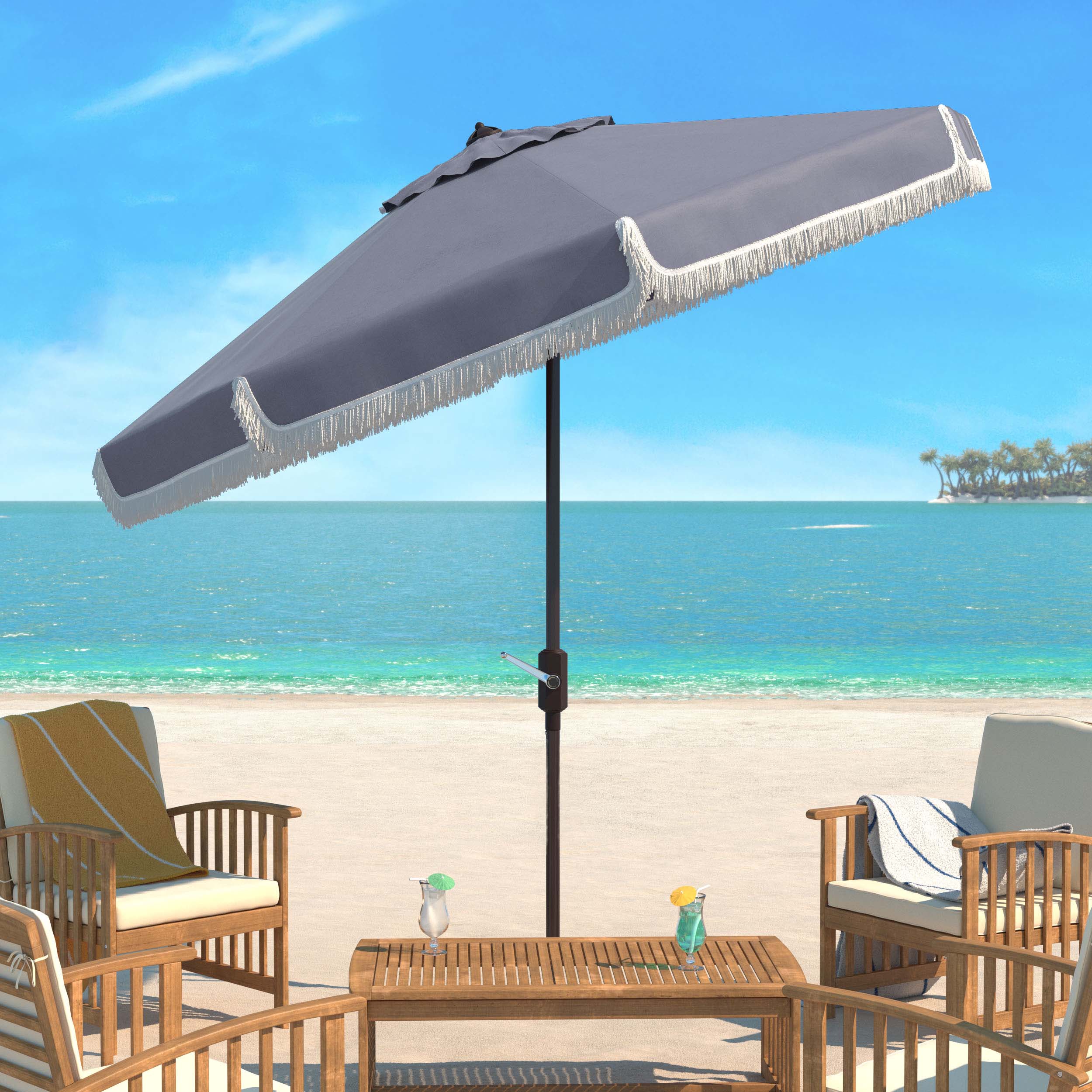 Milan Fringe 11Ft Rnd Crank Umbrella | Safavieh - PAT8108