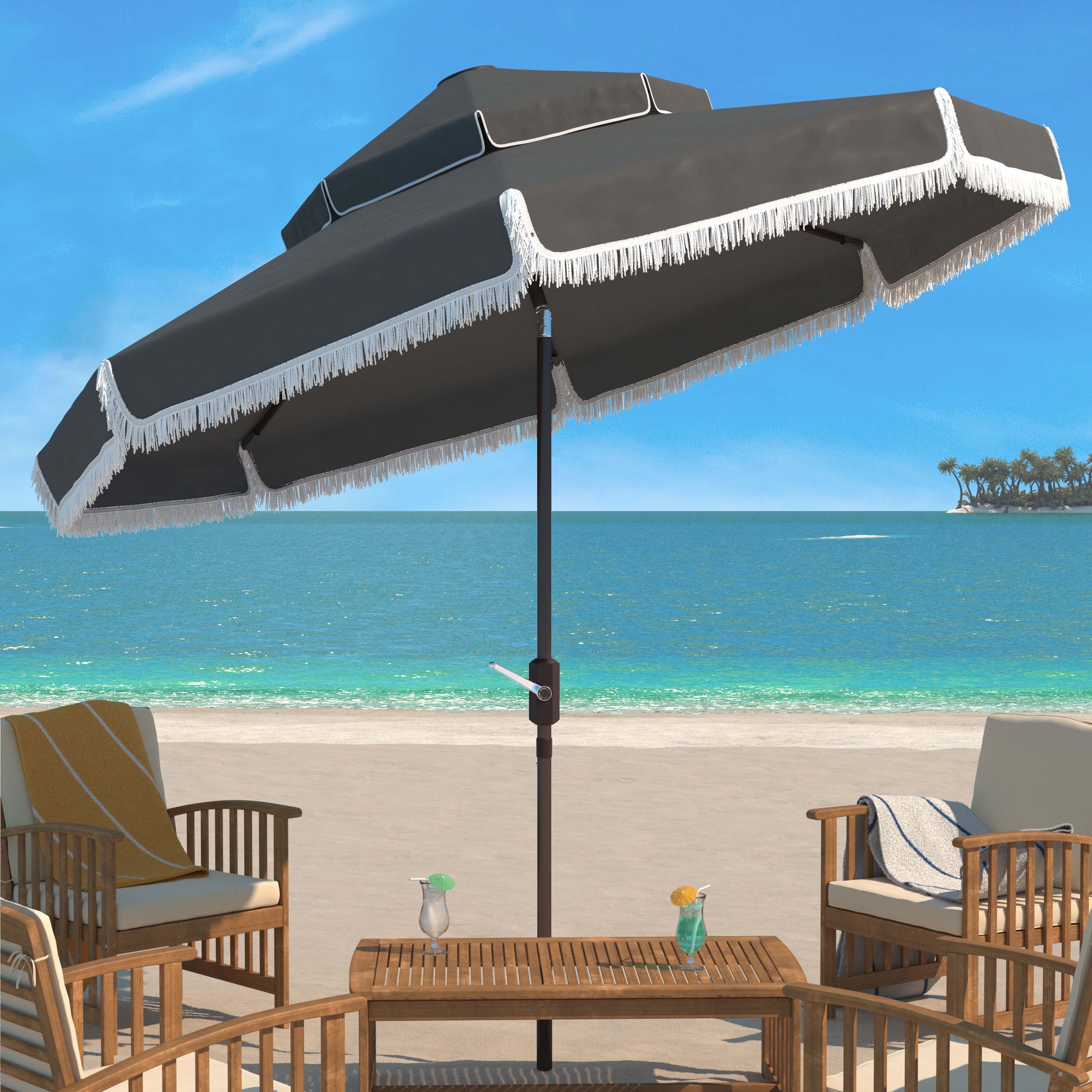 Milan Fringe 9Ft Double Top Crank Umbrella | Safavieh - PAT8208