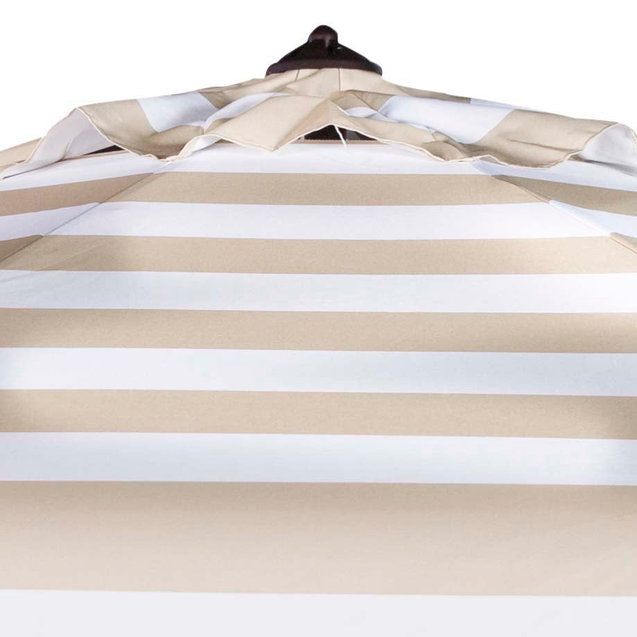 The stylish stripes and scalloped detail of this chic Vienna Umbrella fashionably elevate the art of sunbathing. Vienna's round polyester canopy protects you from harsh summer rays, and its brown aluminum post intelligently complements its neutral color palette.
