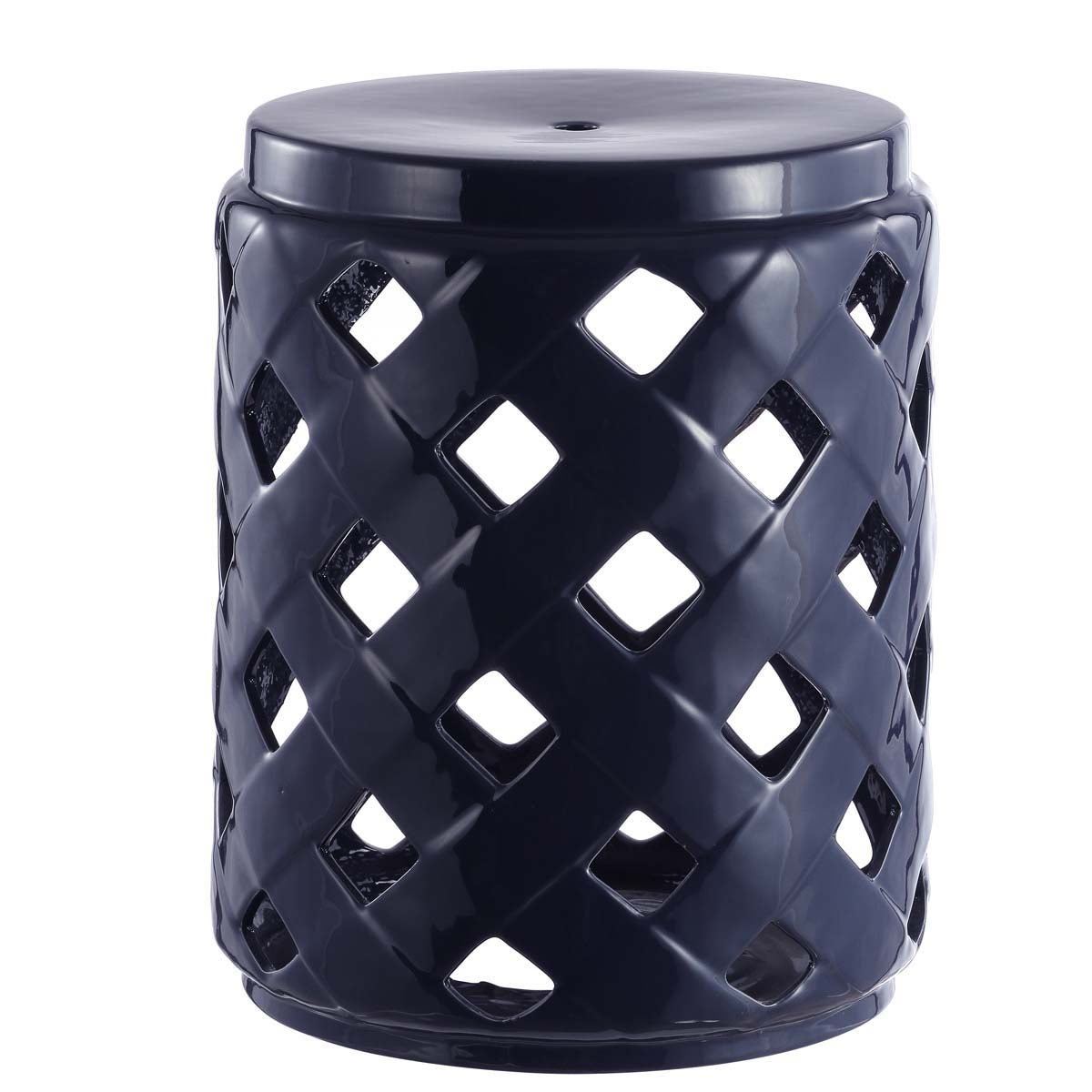 Playful and practical, this dynamic navy ceramic garden stool instantly upgrades any outdoor living space. Designed with a delightful contemporary cut out check pattern, its fine ceramic construction makes it a perfect accent piece.