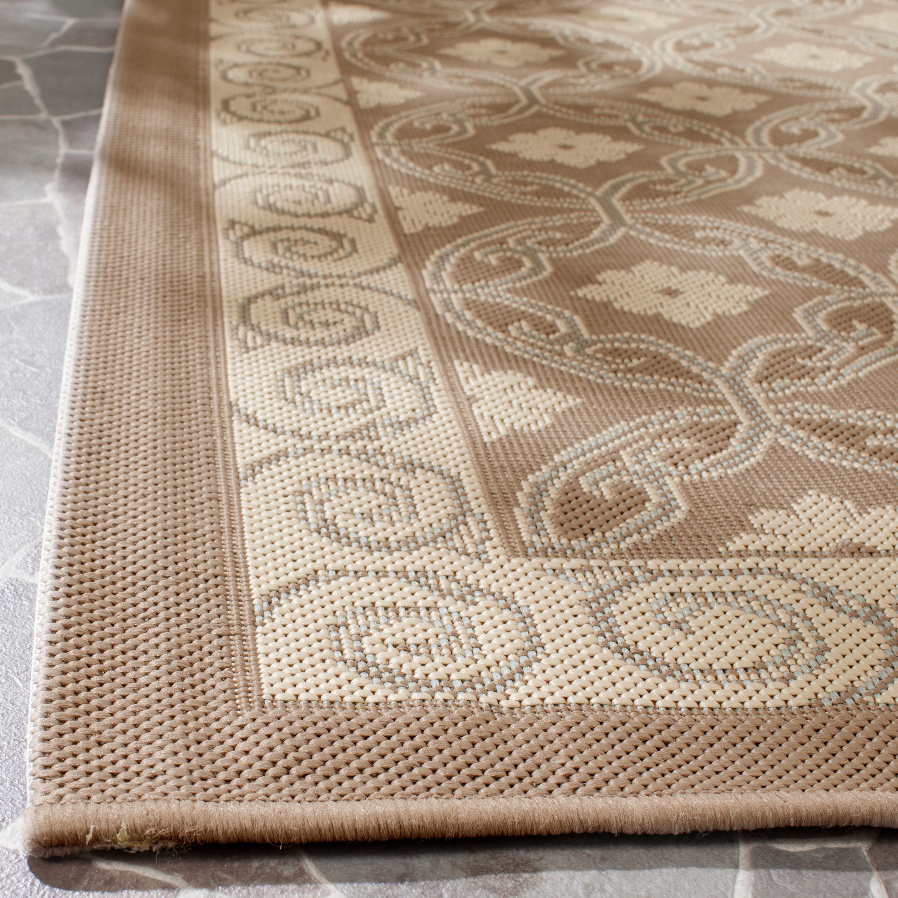 Safavieh?? Courtyard indoor outdoor rugs elevate leisure living d?cor with fashion-forward colors and a wide range of stylish designs. Courtyard rugs are the ideal choice for the deck, patio or porch as well as for those high-traffic areas of your home where eye appeal is equally as important as durability. Made using an enhanced sisal weave and soft, smooth synthetic yarns for long lasting beauty.