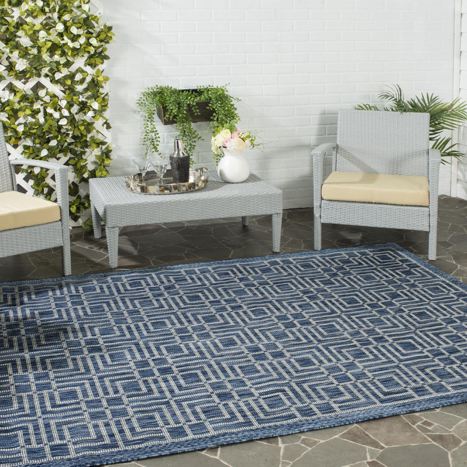 Safavieh?? Courtyard indoor outdoor rugs elevate leisure living d?cor with fashion-forward colors and a wide range of stylish designs. Courtyard rugs are the ideal choice for the deck, patio or porch as well as for those high-traffic areas of your home where eye appeal is equally as important as durability. Made using an enhanced sisal weave and soft, smooth synthetic yarns for long lasting beauty.
