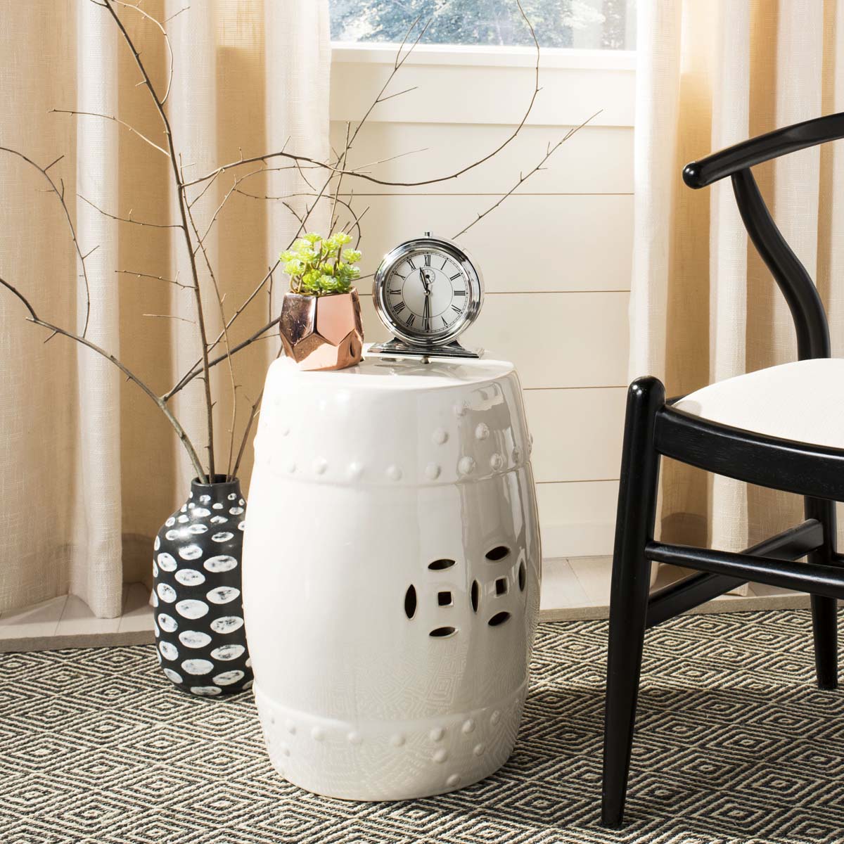 The classic Ming Dynasty barrel shape and pierced design of the Modern Ming Garden Stool is updated with a soft cream glaze on expertly crafted ceramic. Perfect as an accent piece indoors or out, this timeless design complements every decorating style from traditional to contemporary.