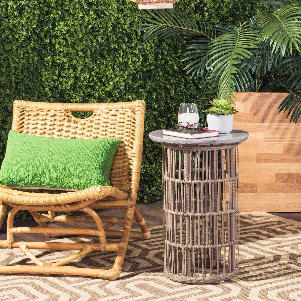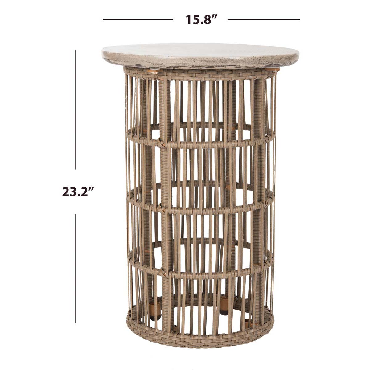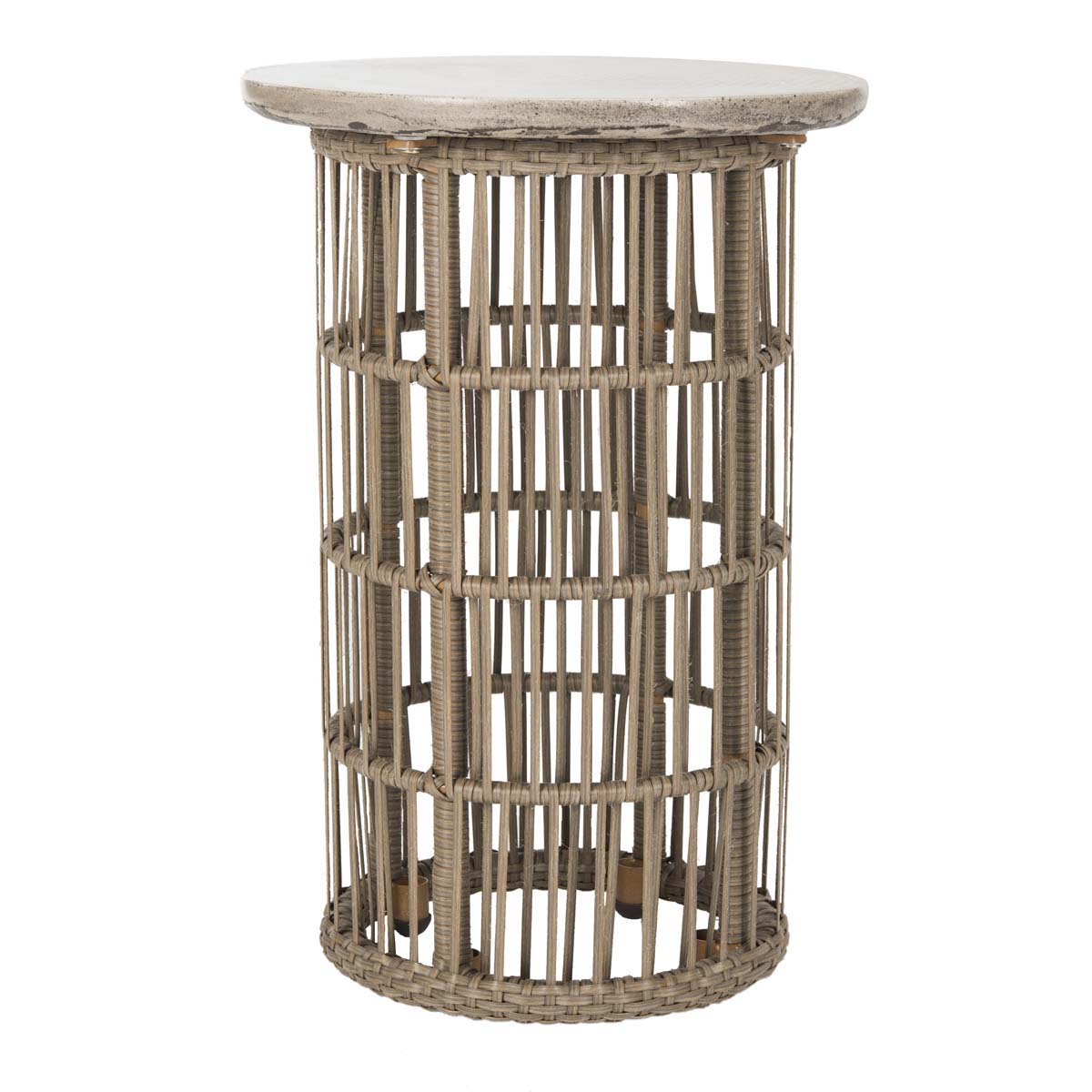 Designed for versatility and value, this petite concrete indoor outdoor side table packs a powerful punch. Its synthetic rattan cover boasts style while its invisible aluminum frame lends substance to any outdoor entertaining area or living room.