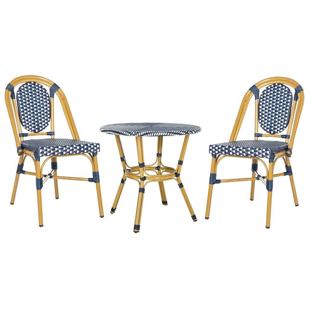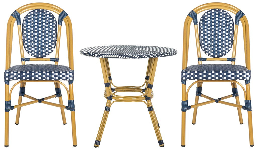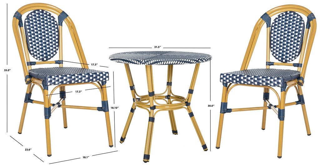 Lenda 3 Piece Bistro Set | Safavieh - PAT9503 - Navy / White / Brown / 18.1" X 23.6" X 35" / 31.5" X 31.5" X 30" is backordered and will ship as soon as it is back in stock.