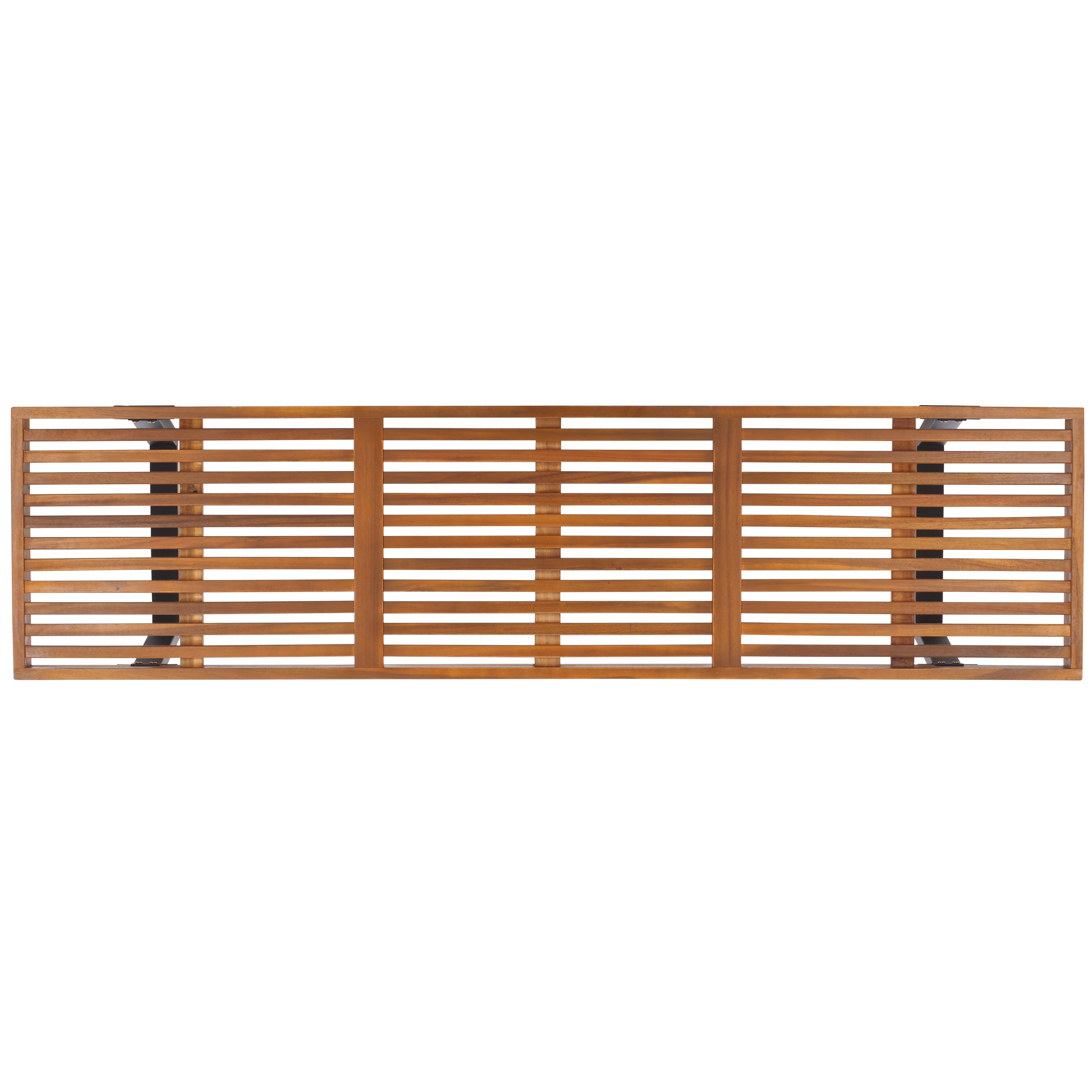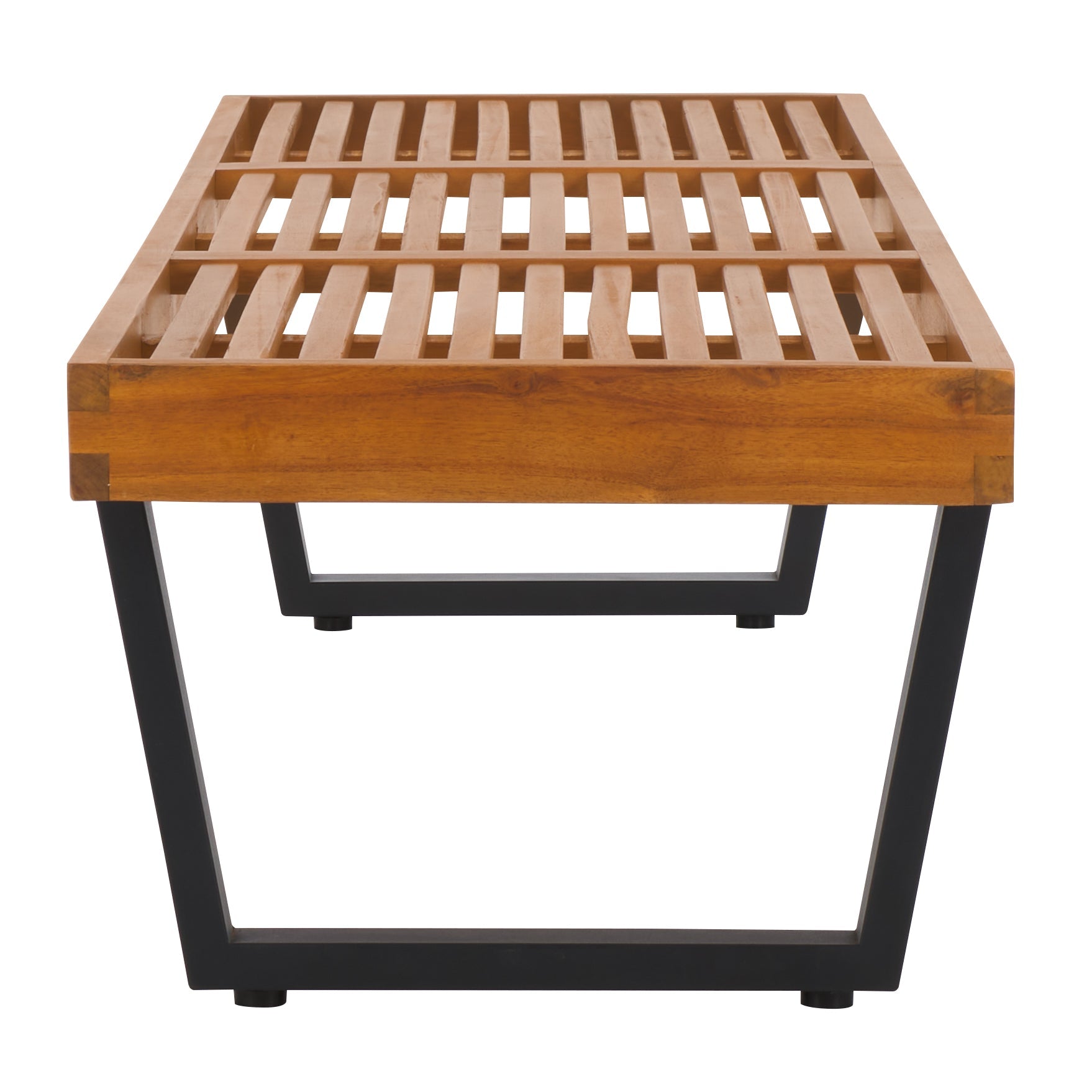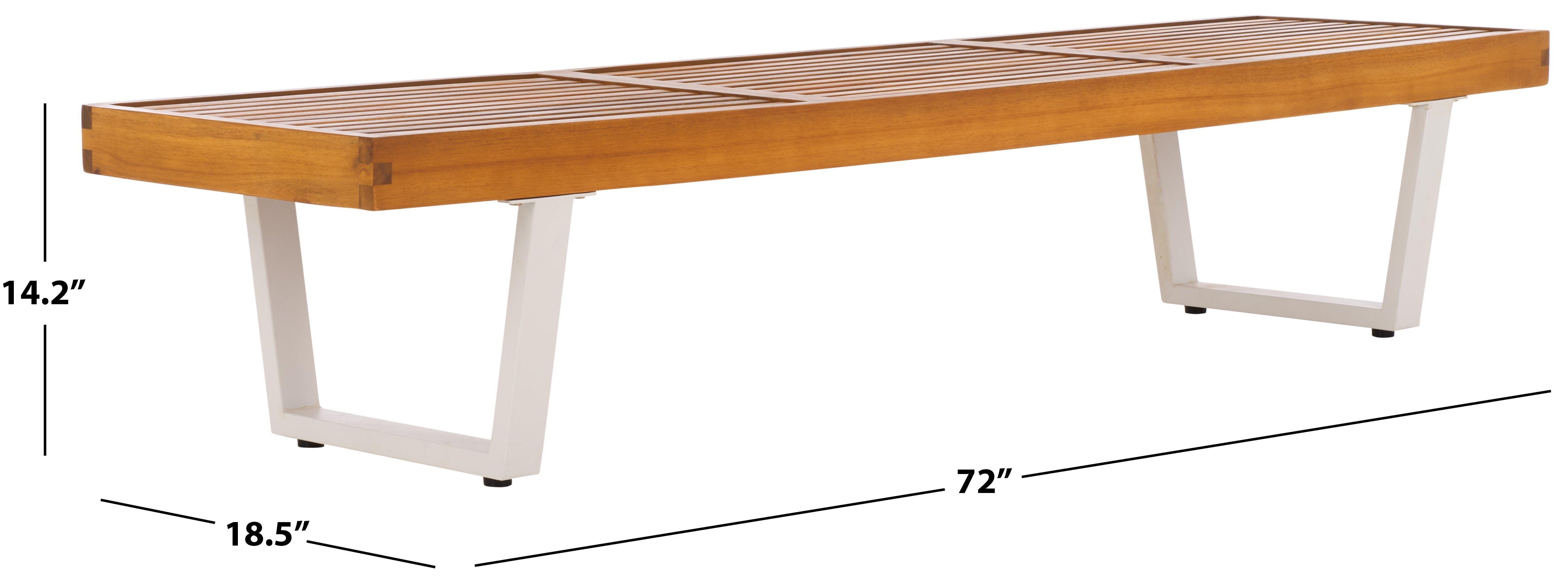 Add an elegant flair to your home decor with the HEATHER 72" BENCH OUTDOOR. The color combination of a natural seat with white legs will seamlessly blend with any style or theme. Expertly crafted from acacia wood and steel, this bench is both robust and stylish. Acacia wood offers a beautifully diverse grain that smoothly pairs with the sturdy, white steel legs, creating a chic and modern vibe. This bench is not just about artistic appeal, but also a testament to ultimate comfort. Whether you're using this bench for cozy afternoons in the garden or brunches on the patio, it is the perfect choice for any outdoor setting. Savor the unique blend of design, comfort, and reliability with the HEATHER 72" BENCH OUTDOOR. Enhance the look of your outdoor space with this tasteful piece of decor.