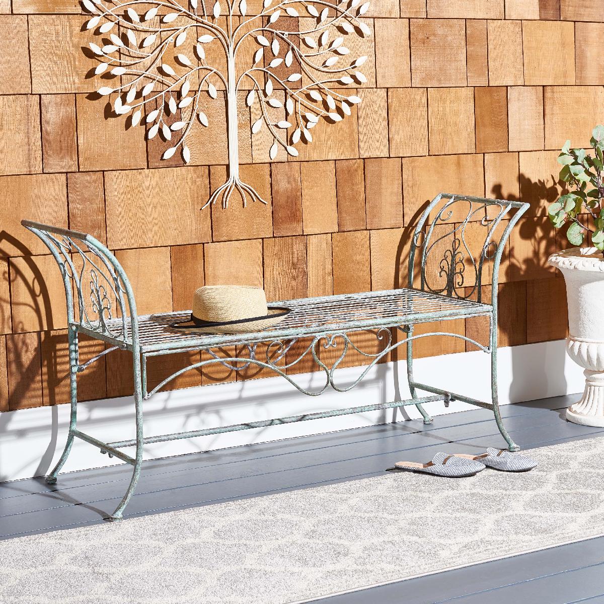 Safavieh Adina Wrought Iron 51.25 Inch W Outdoor Garden Bench - Antique Green