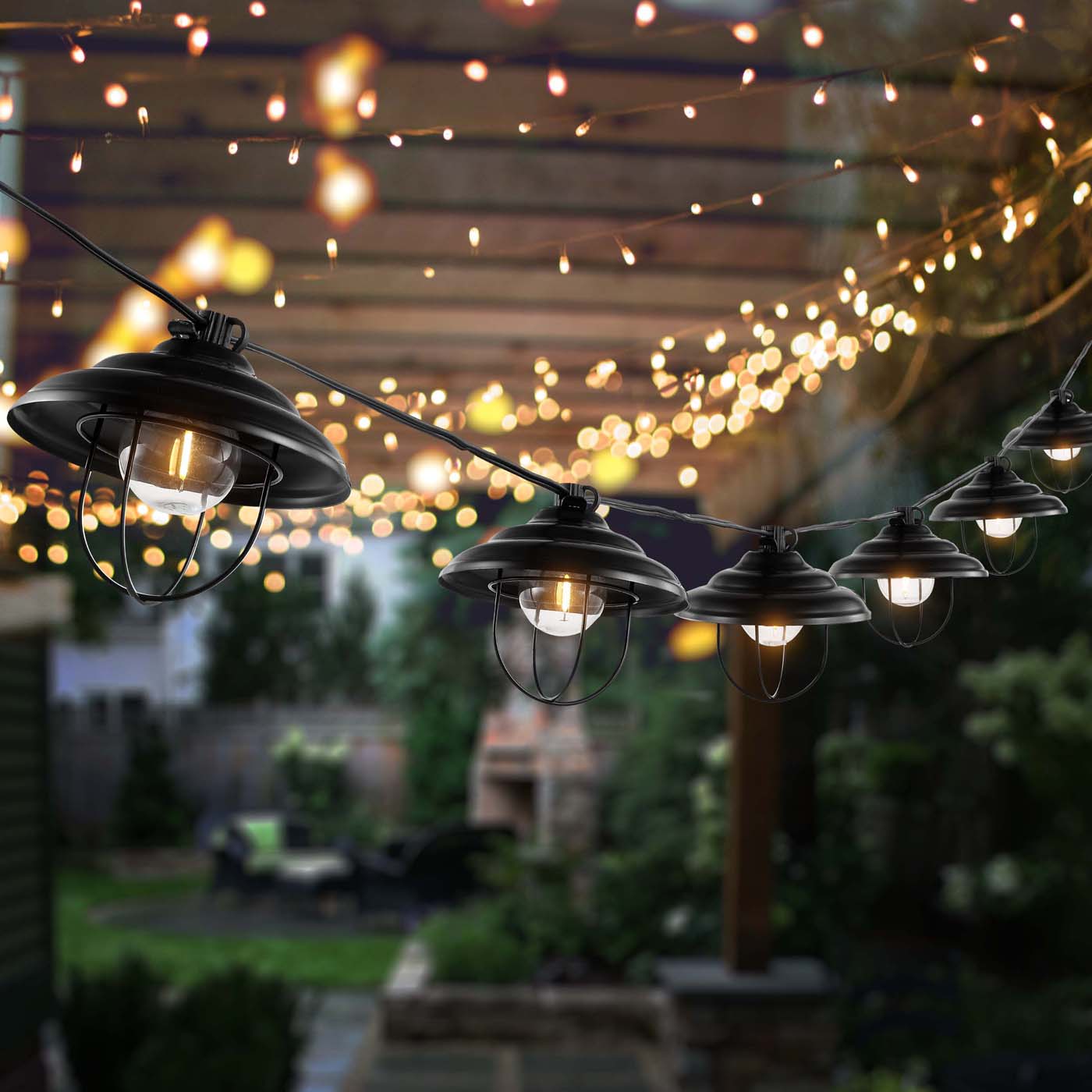 Ancient pagoda lighting comes to today's chic outdoor decor in these alluring Aislin LED Outdoor String Lights. With ten birdcage-inspired cloche shades in a sleek black finish, Aislin gets the party started in style.