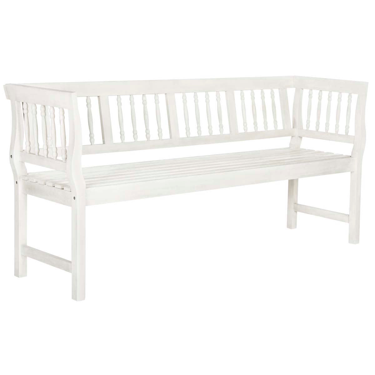 Bring inimitable Southern charm to your outdoor living area with this classic bench. Perfect for a garden or intimate gathering under the stars, it?? crafted with antique white acacia wood and finished with silver metal details for unmistakable elegance.