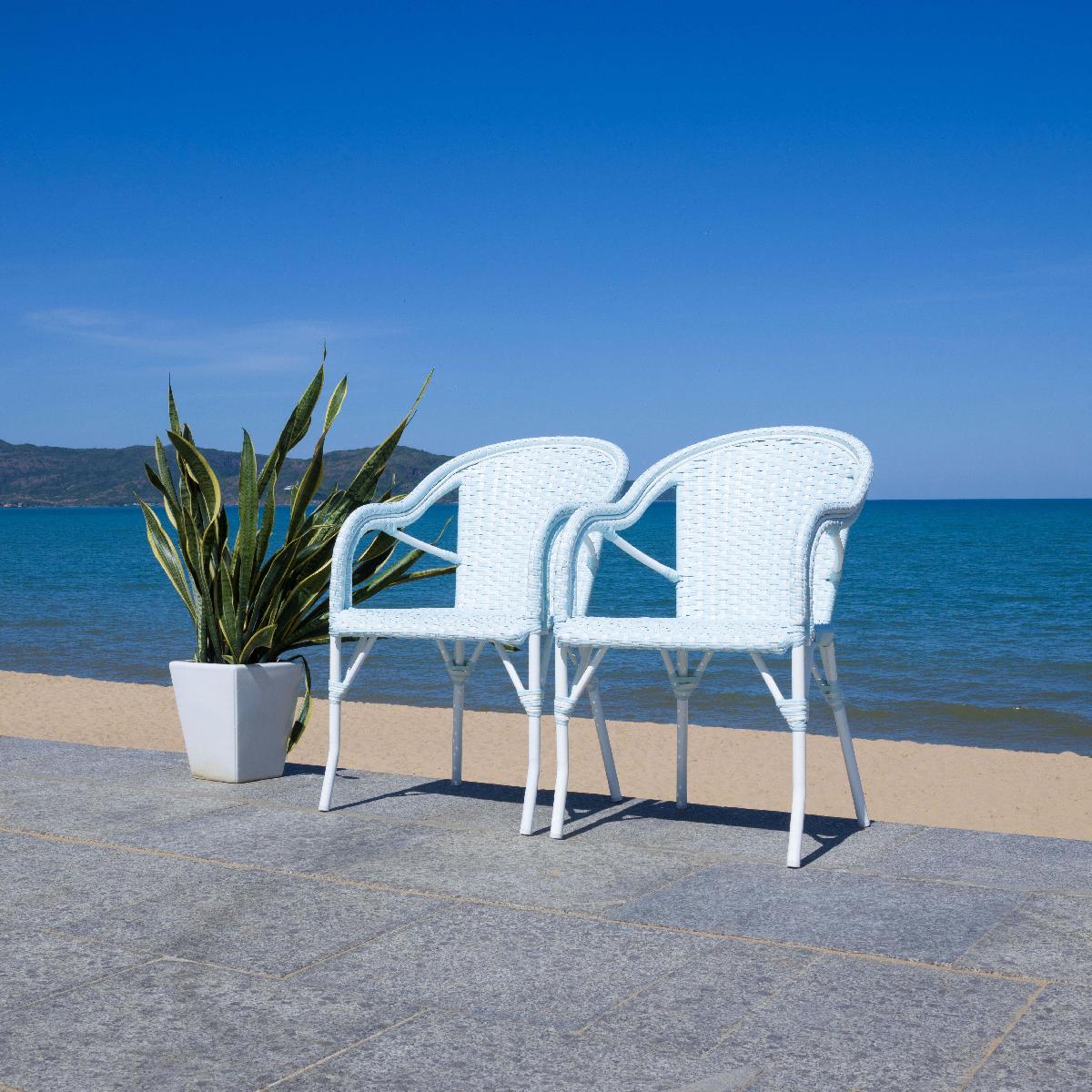 Complement Any Outdoor Space With The Breezy Charm And Warmth Of Our California Armchair. It Updates The Time-Honored French Bistro Chair With A Baby Blue And White Color Palette. Its Woven Contours And Sheltering Arms Offer Easy Comfort. Featuring Fuax Wicker Elegantly Wrapped Around An Aluminum Frame, Our Armchair Captures Textural Beauty That Can Withstand The Effect Of Sun, Rain, And Heat. Our Lightweight And Weather-Friendly Armchair Can Serve As A Convenient, Stylish, And Comfortable Spot To Lounge Or Dine In Your Patio Or Terrace.