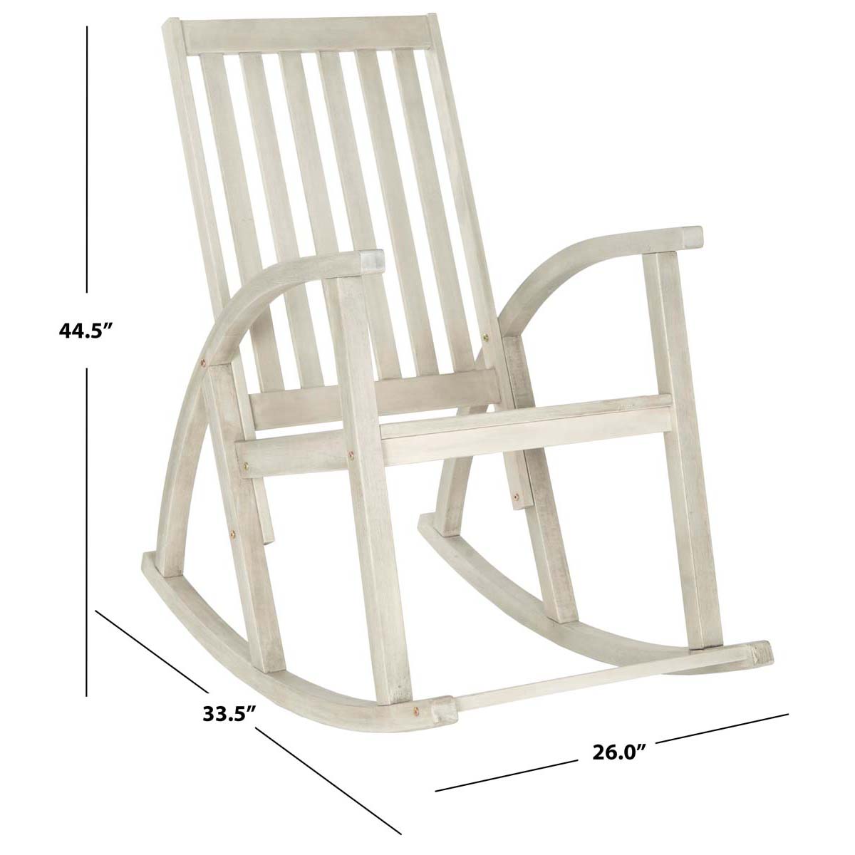 The Clayton rocking chair updates a time proven country porch classic with new contemporary bentwood sides. Masterfully crafted of sustainable acacia wood with a white wash finish, this piece is designed for long wear, comfort and ease of care.