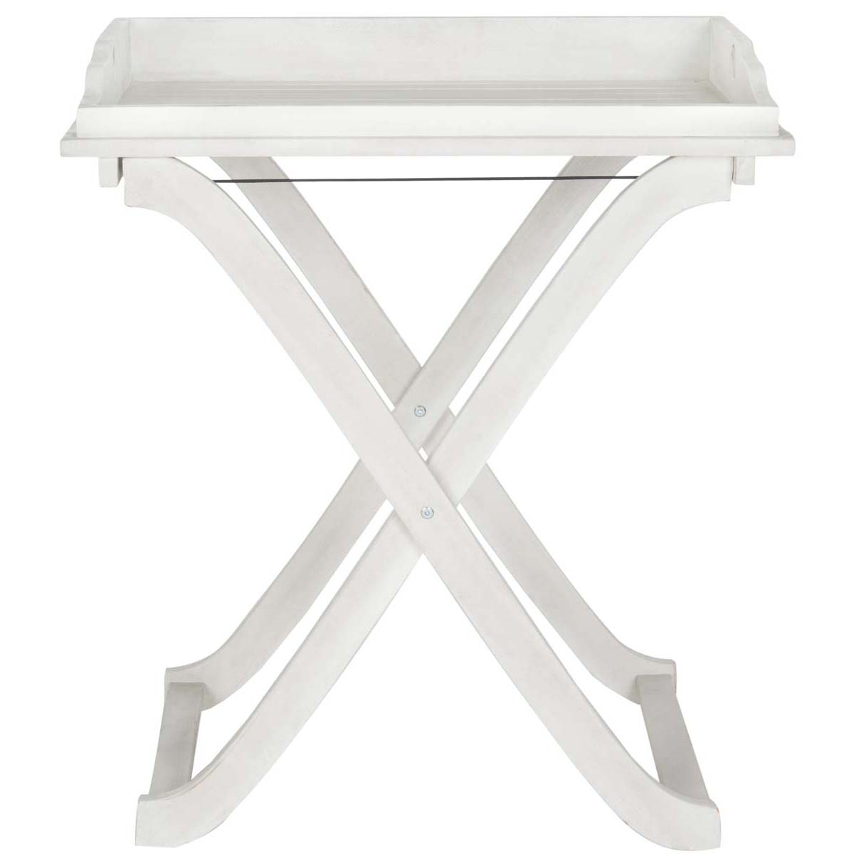 Inspired by British campaign furniture, the Covina outdoor tray table is designed for serving or snacking al fresco.? Beautifully crafted of acacia wood in antique white, Covina is pretty and practical with removable tray that can be locked in position.