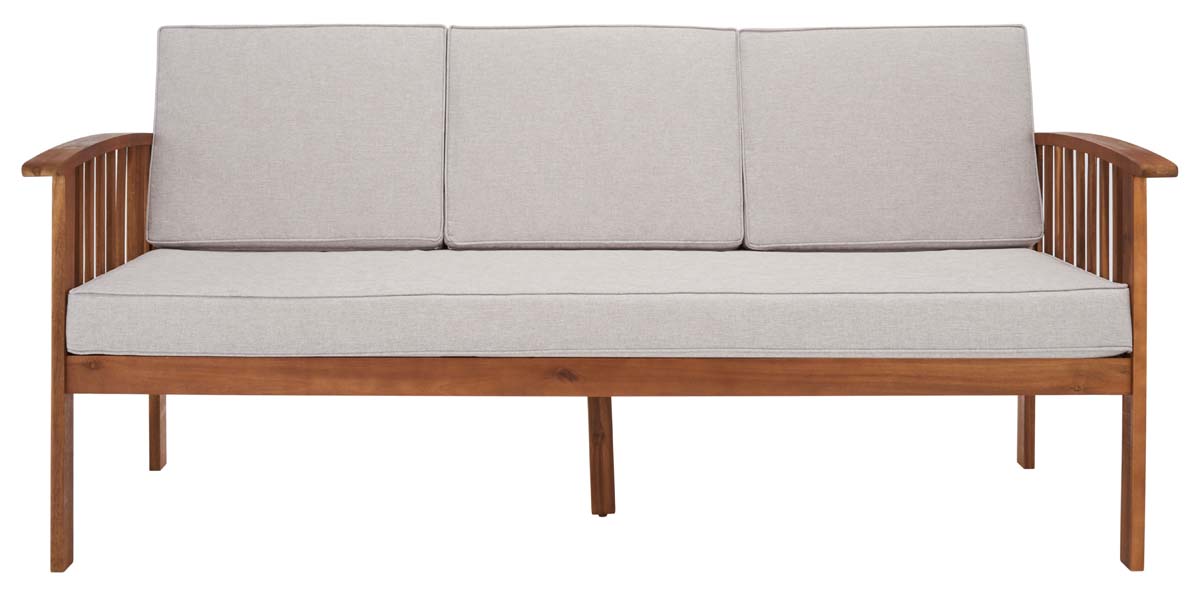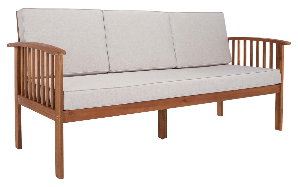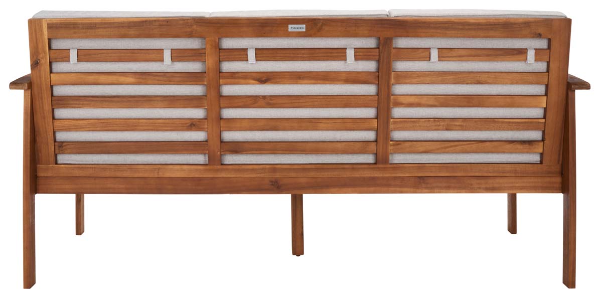 Safavieh Finnick Outdoor Bench - Natural Wood/Light Grey Cushion
