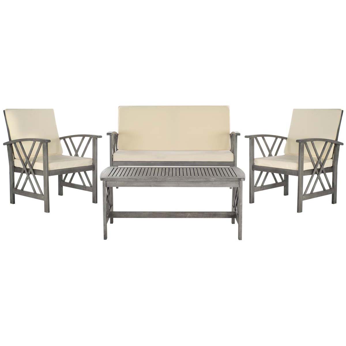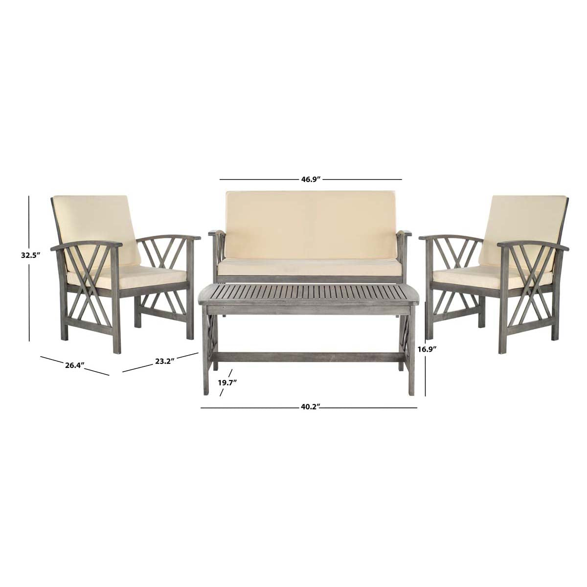 Safavieh Fontana 4 Pc Outdoor Set - Grey Wash/Beige