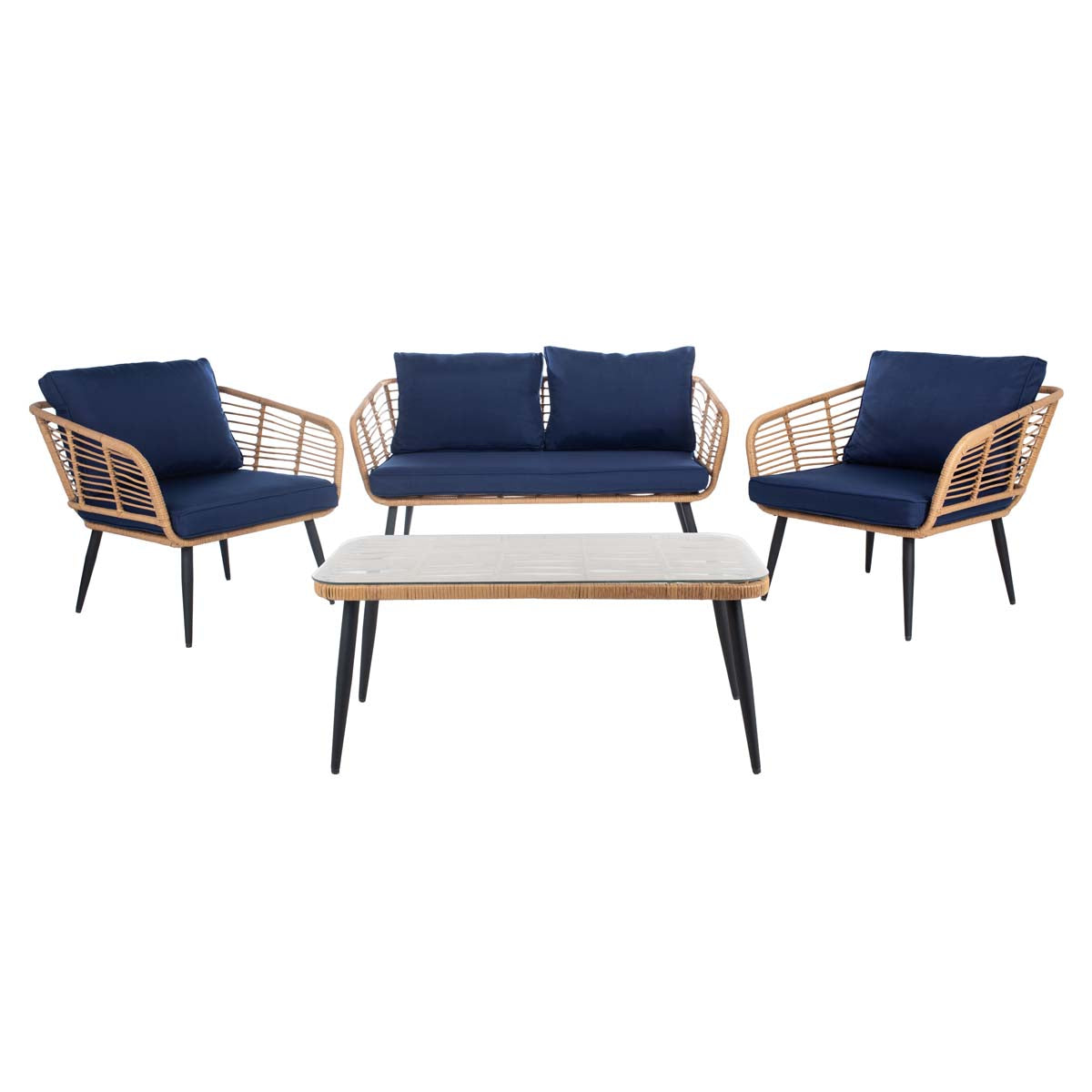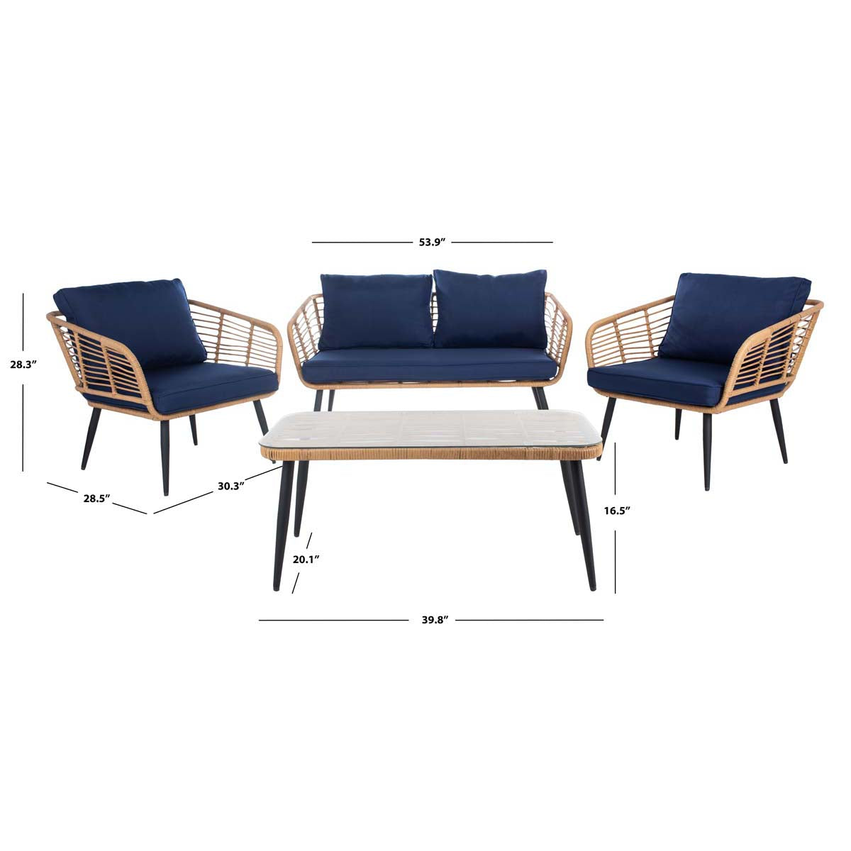 Safavieh Harrley 4Pc Living Set - Natural / Navy