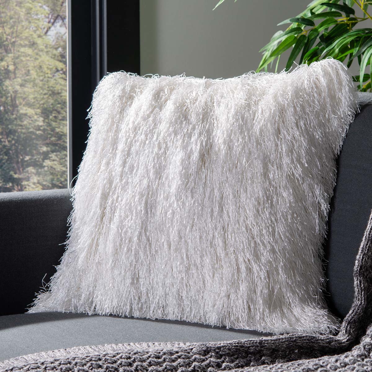 When the fashionably fabulous look of shag is paired with all weather sensibilities the results is the incredibly durable and decorative Soleil Indoor Outdoor Pillow. This decor smart accent accessory is made using soft, versatile synthetic yarns in a shimmering shag pile and colored in lustrous pearl for a retro chic look that will stand up beautifully to the elements. A hidden zipper on the solid colored back of this sexy throw pillow makes for convenient access and easy care cleaning.?,When the fashionably fabulous look of shag is paired with all weather sensibilities the results is the incredibly durable and decorative Soleil Indoor Outdoor Pillow. This decor smart accent accessory is made using soft, versatile synthetic yarns in a shimmering shag pile and colored in lustrous pearl for a retro chic look that will stand up beautifully to the elements. A hidden zipper on the solid colored back of this sexy throw pillow makes for convenient access and easy care cleaning.?