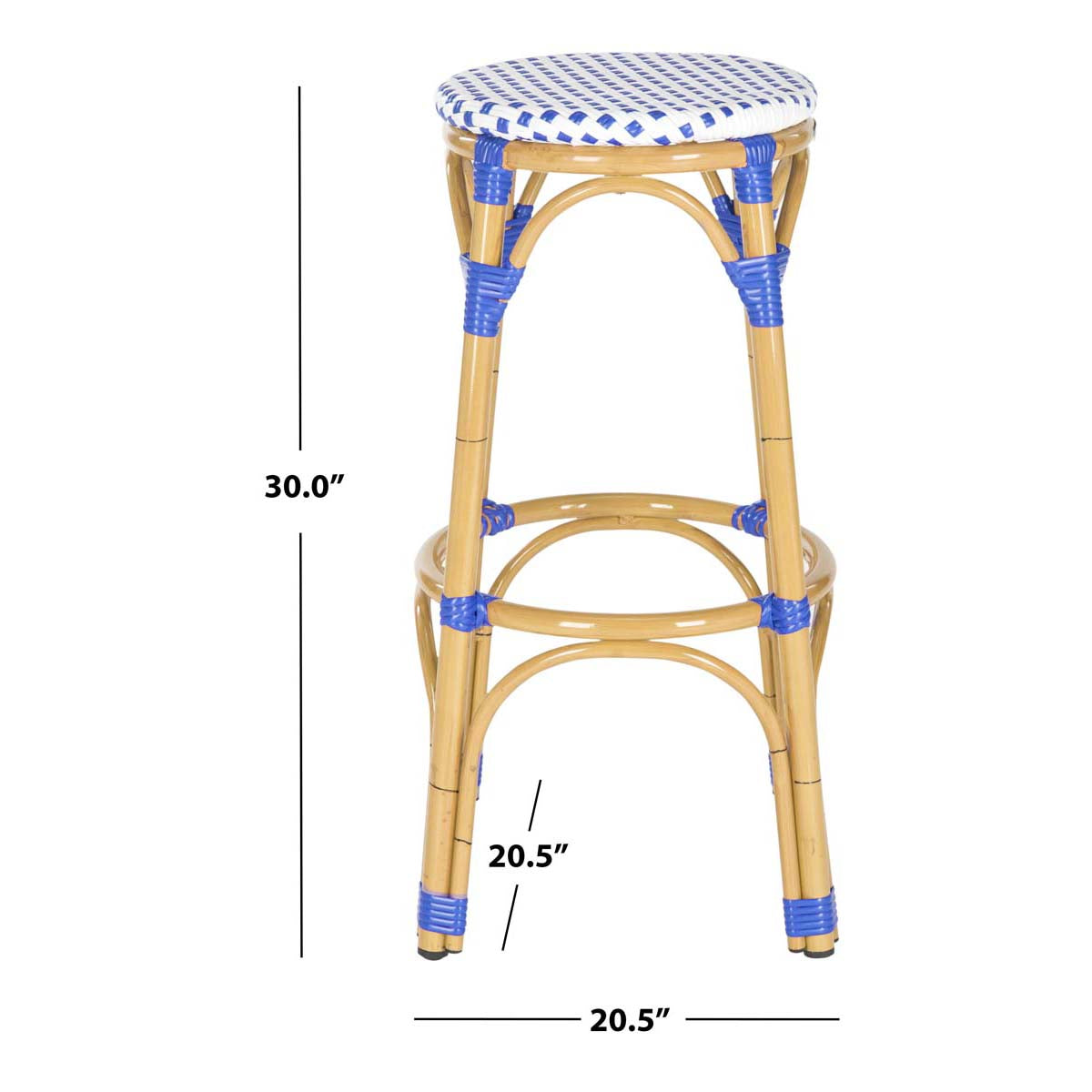 Raise a glass to coastal farmhouse decor with the Kipnuk Indoor Outdoor Bar Stool. A colorful addition to the kitchen or patio bar, Kipnuk takes its cues from classic European bistro stools for effortless style, crafted of white and blue rattan and faux bamboo for a relaxing, easy going ambiance.