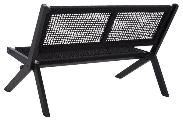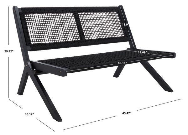 Bring contemporary-chic interior style to the great outdoors with this stunning Kobina Bench. Kobina?? finely sculpted black wood frame and woven matching black rope details are at the epitome of modern style, and designers love the portable versatility of its folding construction.