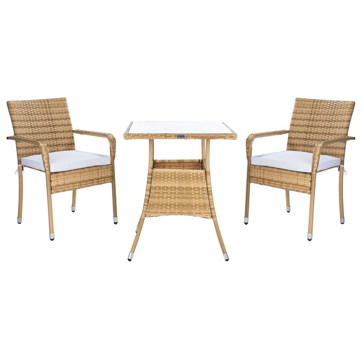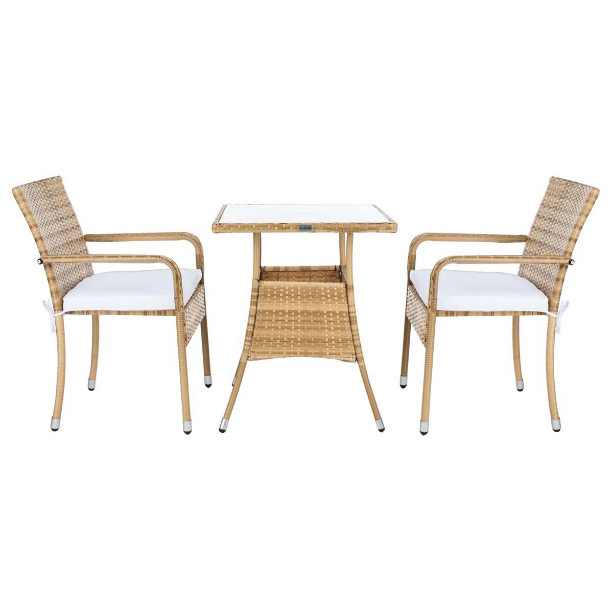 Enjoy al fresco dining with this contemporary-chic Laban Bistro Set. The subtly reclined backs and plush white cushions of Laban?? two natural PE rattan chairs allow for maximum relaxation, and its matching glass-topped table is effortlessly elegant.