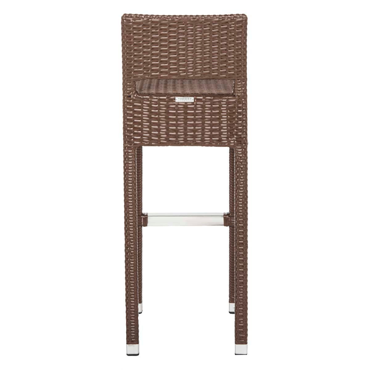 The height of fashion, this contemporary indoor outdoor contemporary bar stool makes a chic statement in any interior. Ideal for sipping cocktails or an espresso, its timeless brown wicker construction with silver metal accents makes it an investment.