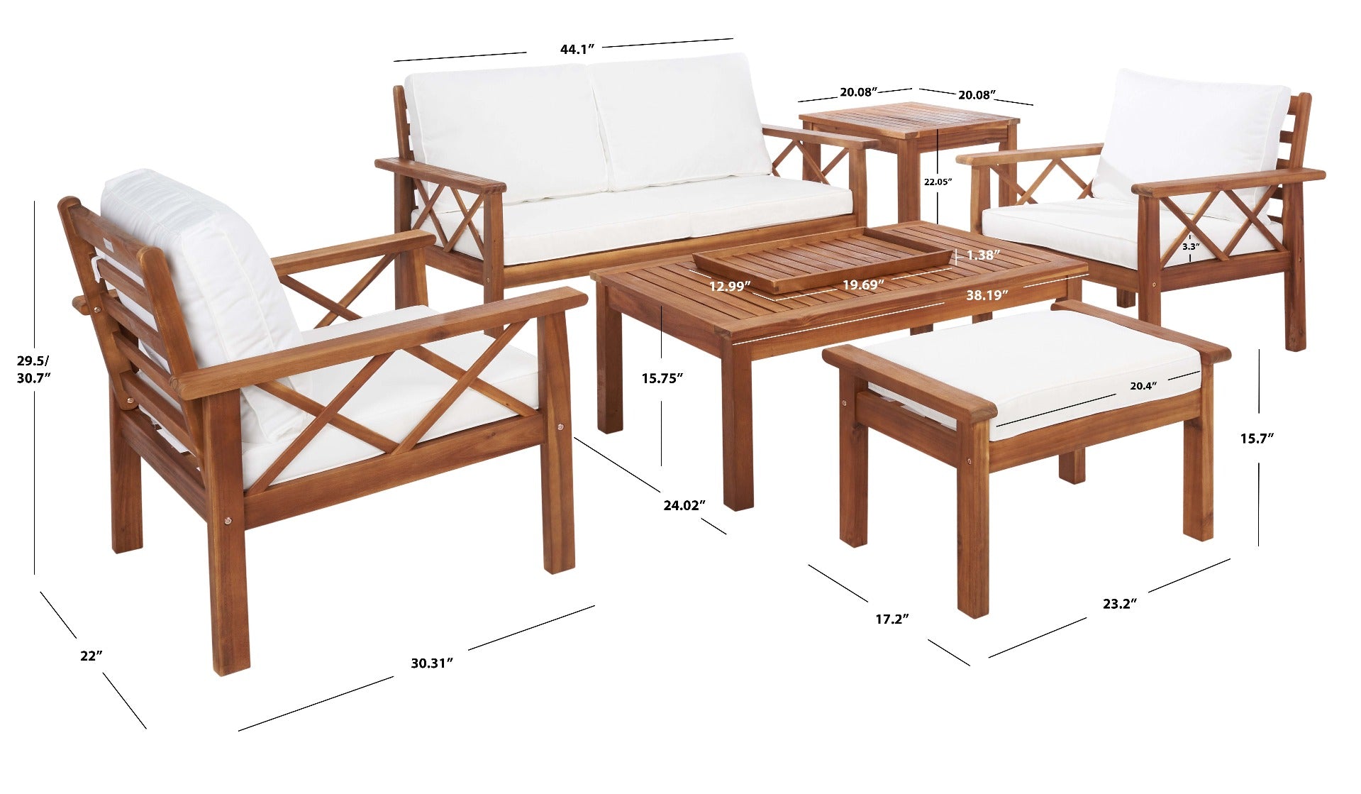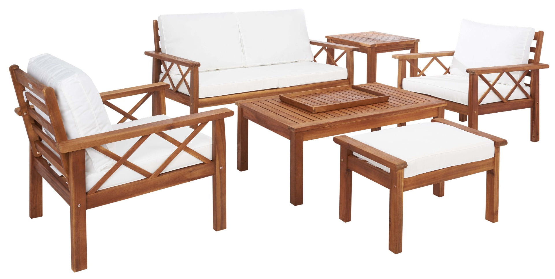 Safavieh Loanna 6 Piece Outdoor Living Set - Natural/Beige Cushion