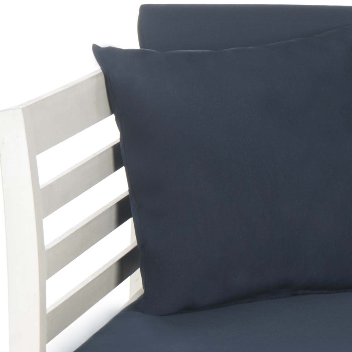 A contemporary twist on a resort classic, the Malibu Daybed transforms any outdoor space into a relaxing zen oasis. The sleek look of its single seat and back cushions in navy all weather fabric is perfectly contrasted with the beauty of acacia wood in an antique white finish.