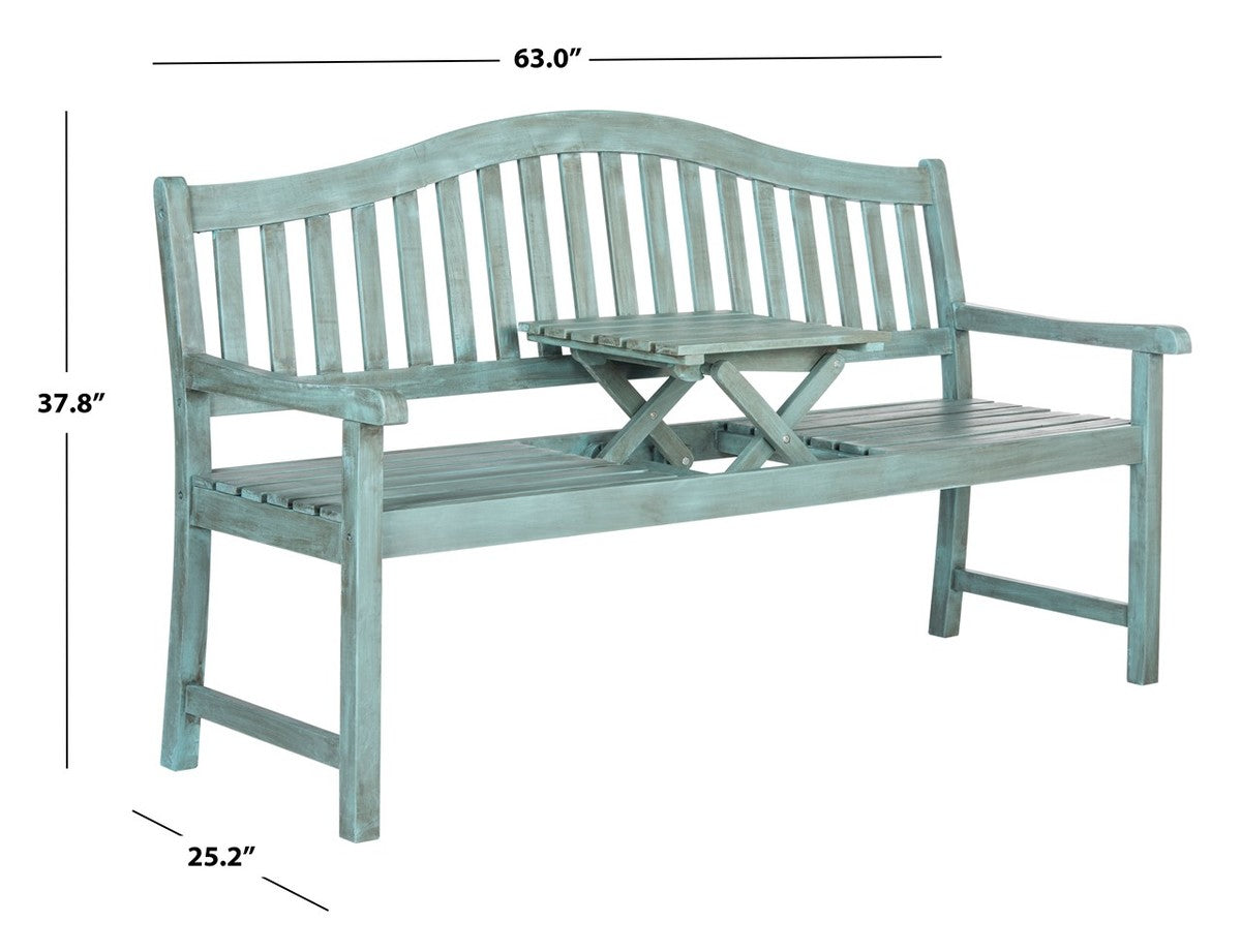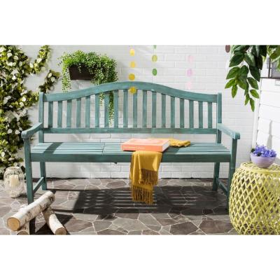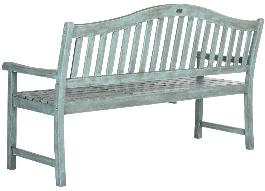 Stop and smell the roses. Crafted with beach house blue acacia wood and galvanized steel, the Mischa Bench?? soft, Asian inspired style is a charming outdoor companion??not just a fair weather friend.