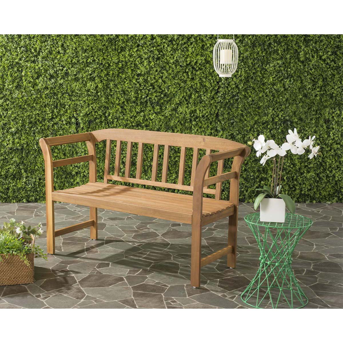 This 2 seat outdoor bench is a instant classic. Simple, clean lines and a natural finish make it perfect for contemporary and traditional outdoor living. Crafted with acacia wood and brass detail, it?? an ideal pairing of form and function.