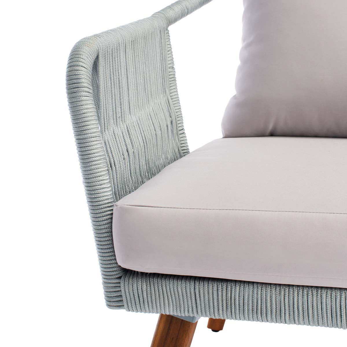 Upgrade any outdoor entertainment area with this fabulous Raldin Living Set. A design investment, its natural eucalyptus wood and grey nylon rope construction lend durability and retro chic style, while matching grey cushions ensure instant relaxation.