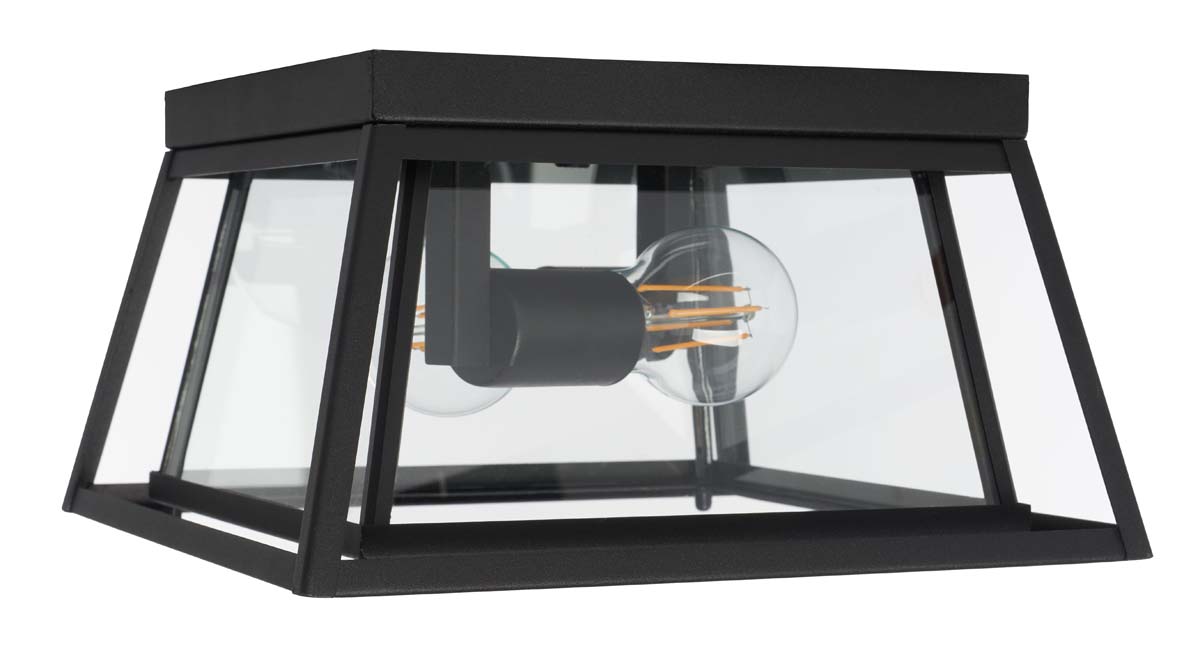Embrace a bright and welcoming outdoor space with Rydler flush mount. Delightfully minimalist, the ceiling light features a clean-lined trapezoid body and clear glass panes. With a timeless metallic finish, the wall light strikes the perfect balance between form and function. Our sleek flush mount lends a clean and even glow to illuminate your porches and covered patio.