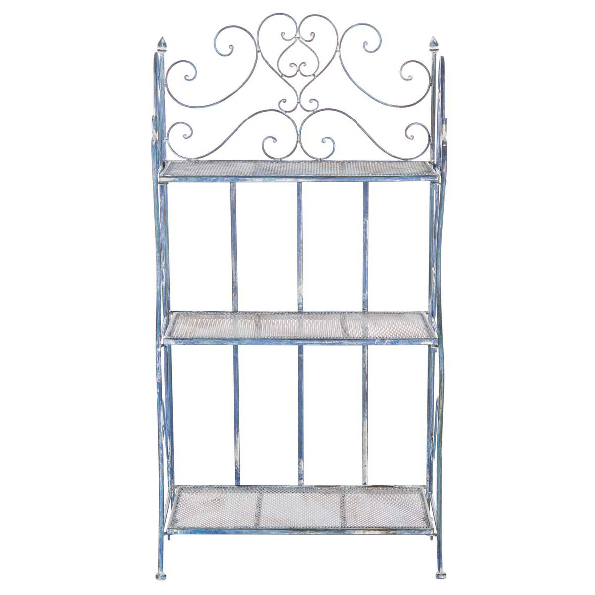 Bring charm and character to any outdoor room or garden with this beautiful Torus Shelf. Designed with elegant iron scrollwork in an antique blue finish, Torus's three generous tiers provide ample space for stylish storage.