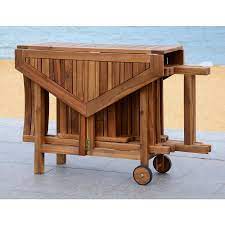 Stack the odds for carefree outdoor living in your favor with the ingenious Kerman dining table and chair set. Crafted of eco friendly acacia wood in a natural finish, 4 director style chairs fold and tuck under a foldable hexagonal table for easy storage.