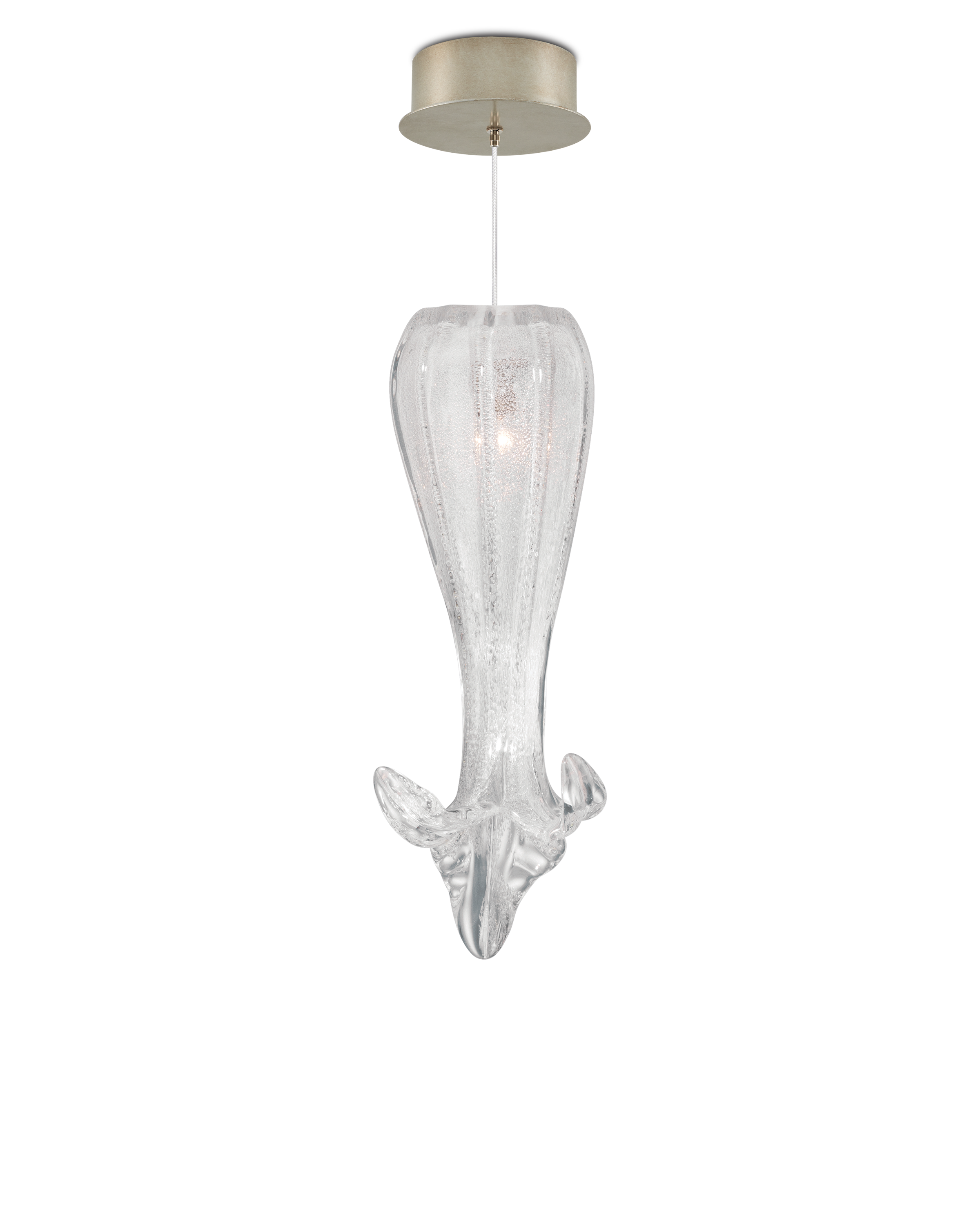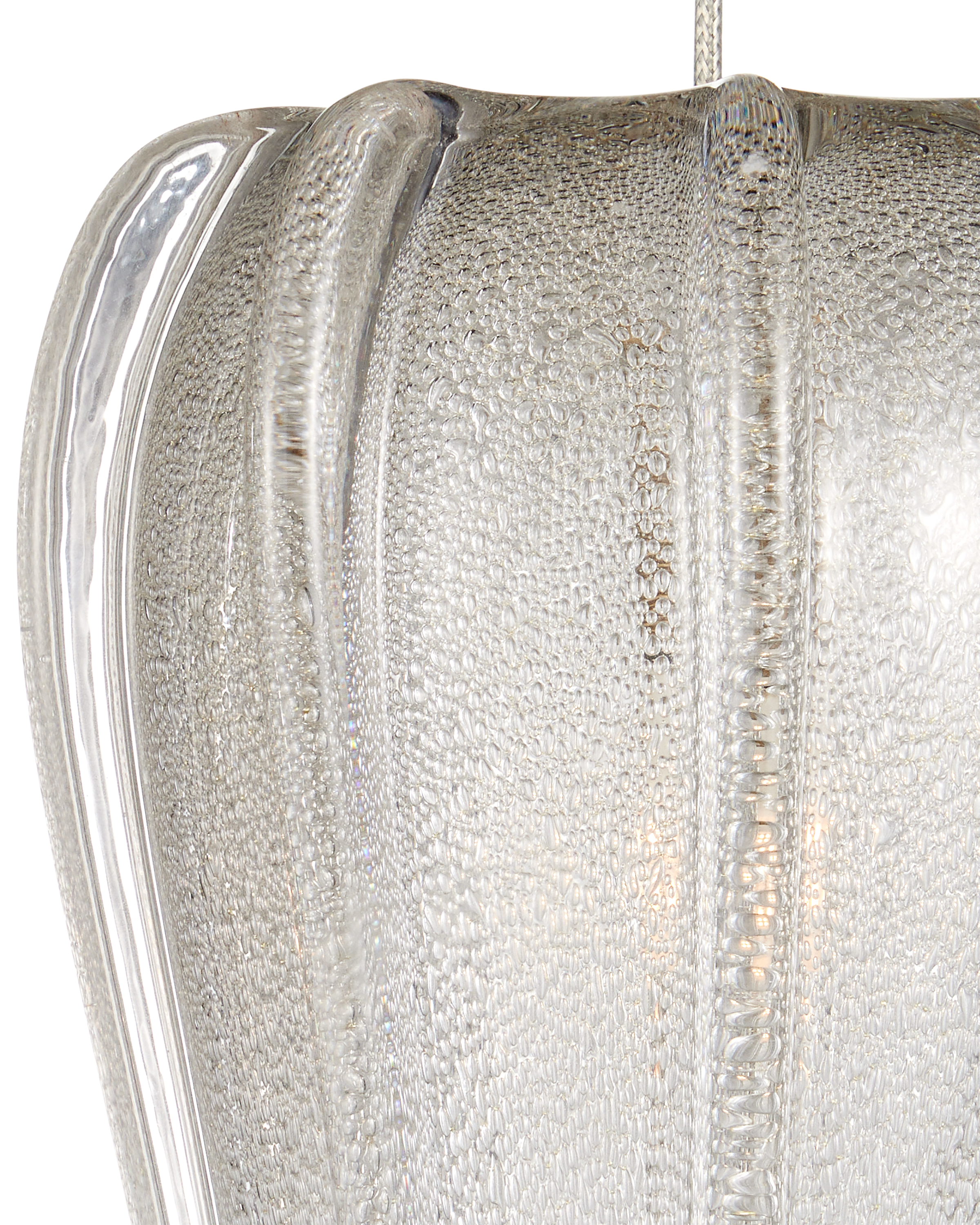 The Currey & Company Calmar Pendant is a clear glass pendant that is infused with texture when the glass is infused with a tight-bubble pattern. Adjustable from 21" to 133" with use of included chain/rod kit/cable. If your space calls for a longer drop, additional chain/rods/cable is available for purchase.