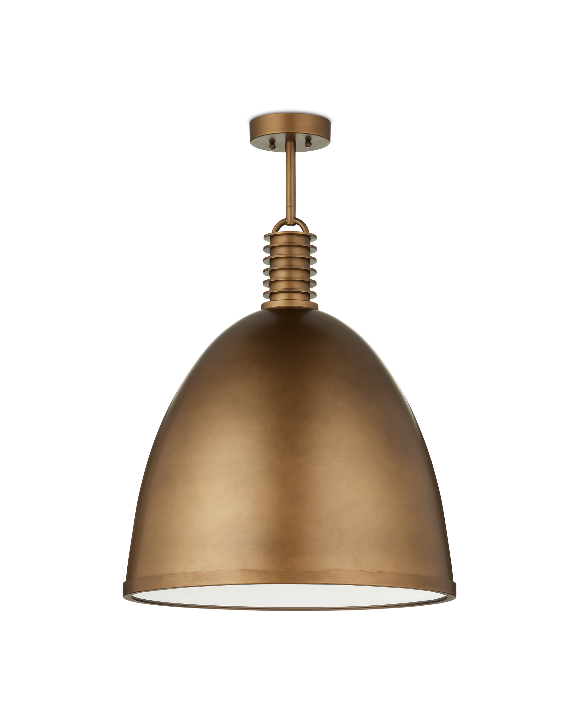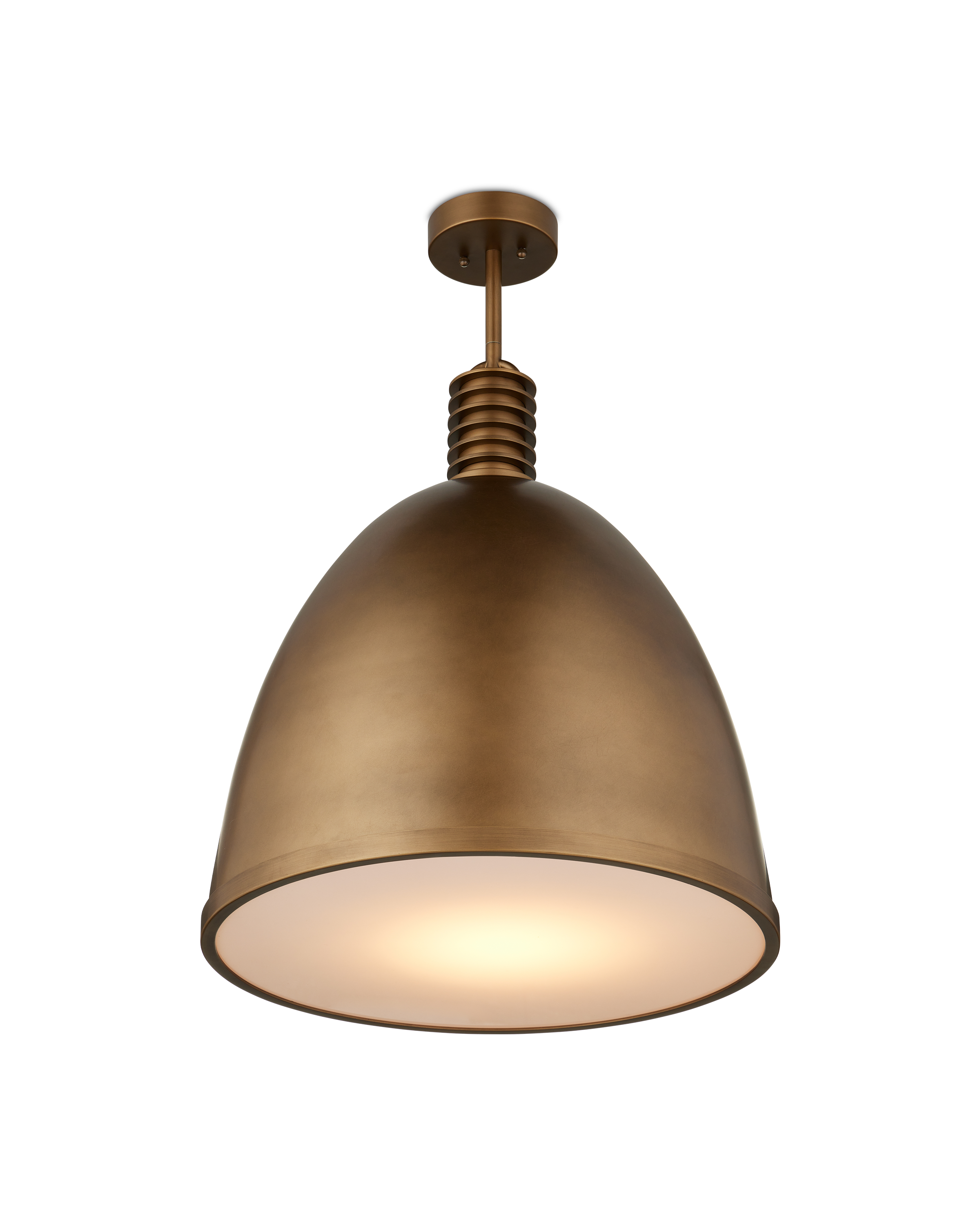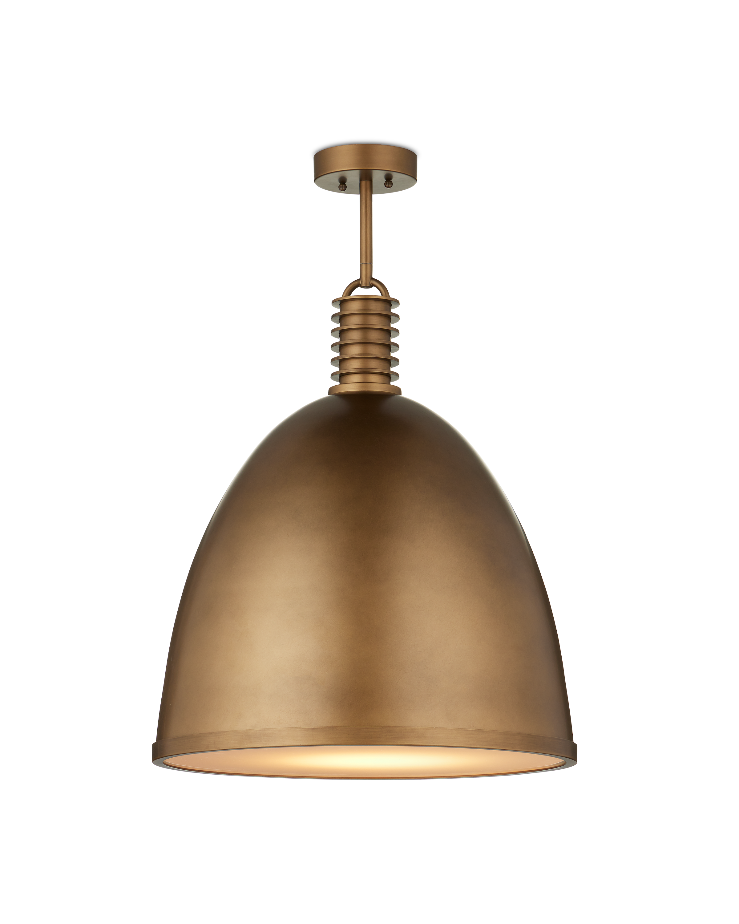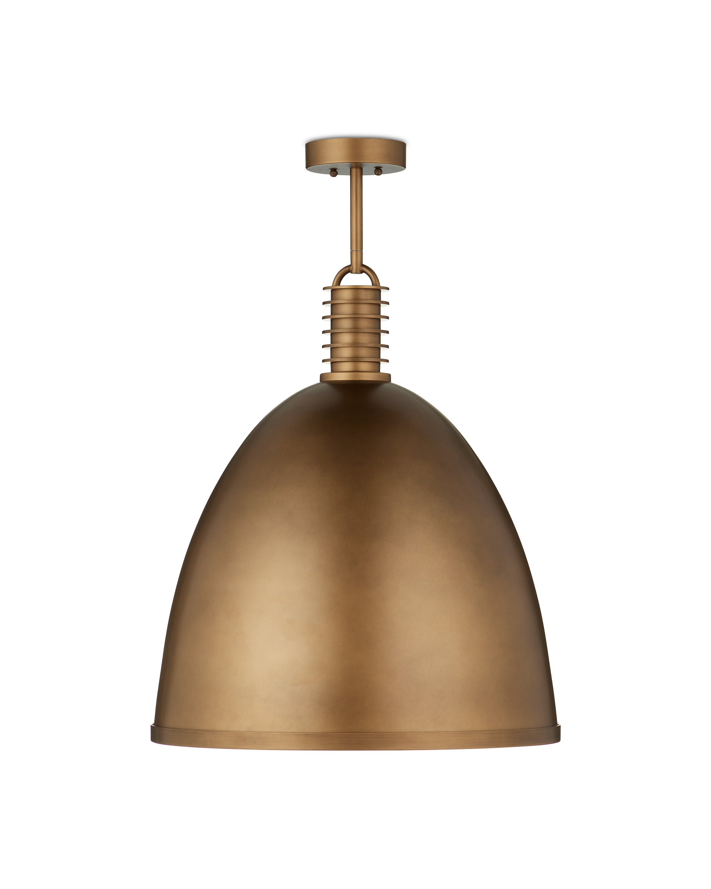 The Currey & Company Cupola Large Pendant has Mid-Century lines in its dome-shaped profile with ribbed detailing along the upper stem. Adjustable from 30.5" to 72.5" with use of included chain/rod kit/cable. If your space calls for a longer drop, additional chain/rods/cable is available for purchase.