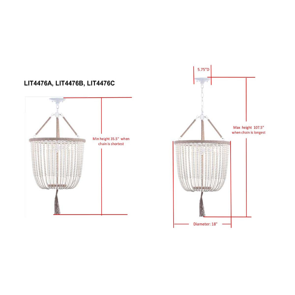 Safavieh Angie 3 Light Cream 18 Inch Dia Beaded Pendant-Cream
