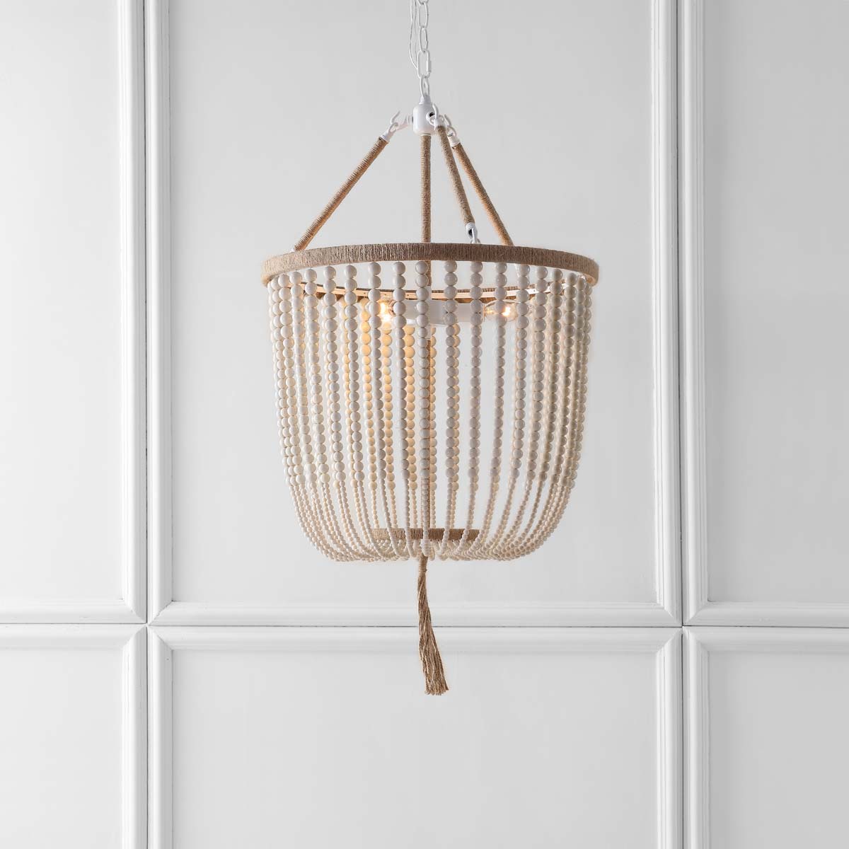 Inspired by the handcrafted vessels in Budapest?? top luxury hotel, this adjustable 3 light beaded pendant lamp radiates chic boho style. Its posh strands create informal elegance ideal for any taste, and its luxe tassel makes it a designer must have.