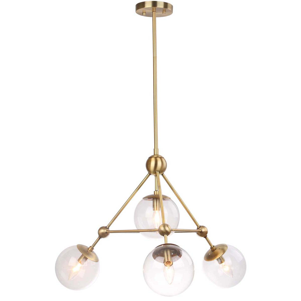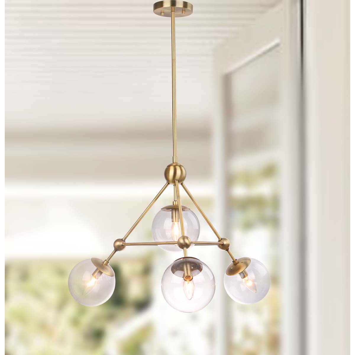 An unofficial design landmark, this modern pendant is a unique and artistic focal point. Designed to create a warm glow in the dining room or living room, its grand pyramid design features a deluxe gold finish and stunning glass orbs.