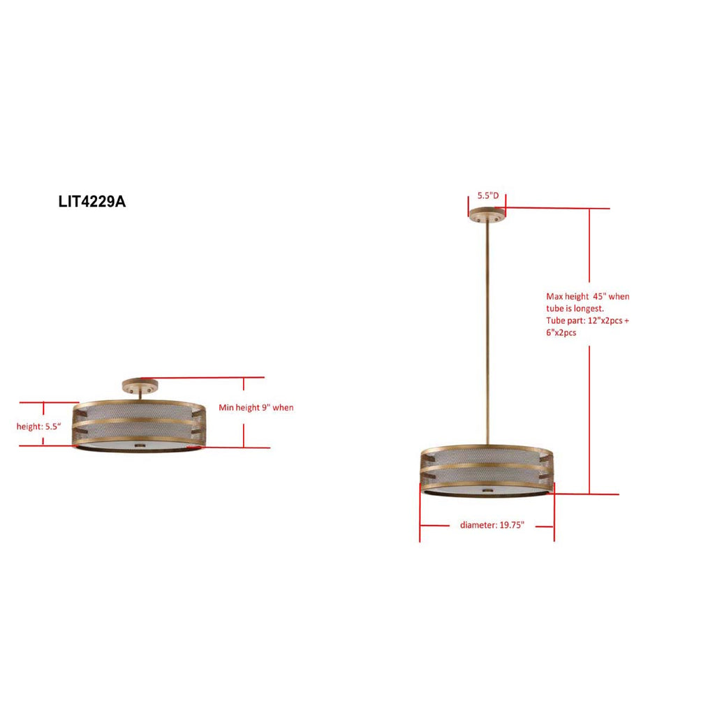 Safavieh Greta Veil 4 Light Antique Gold 20 Inch Dia Adjustable Pendant-Antique Gold