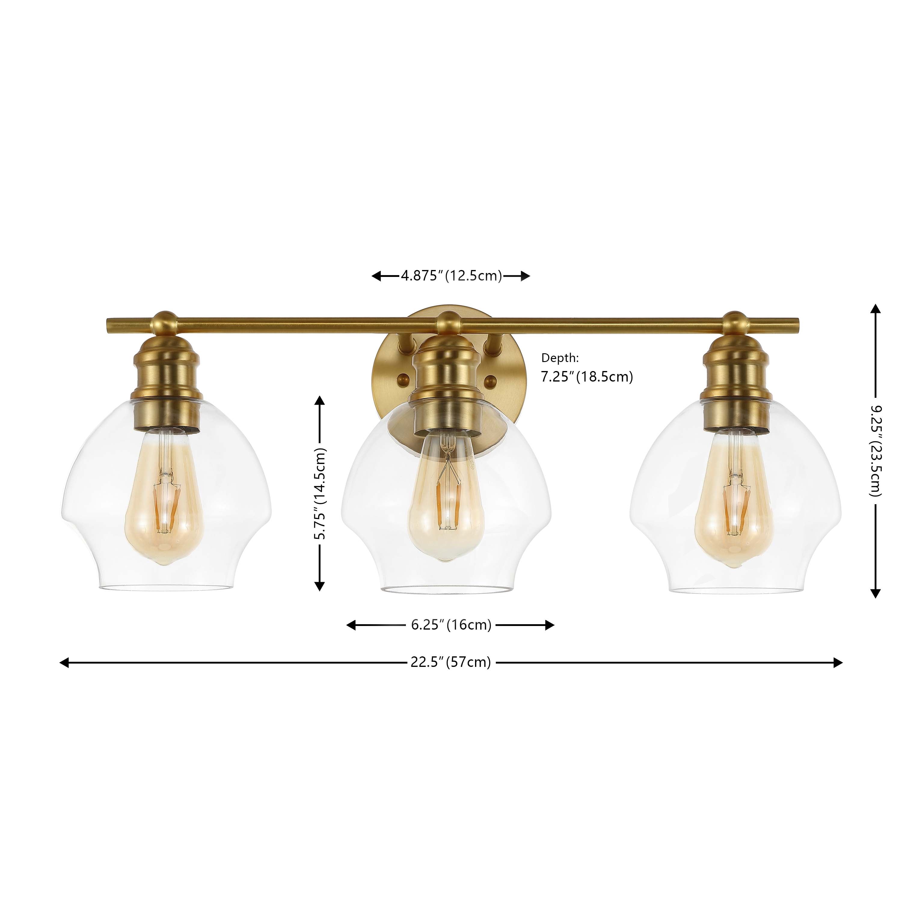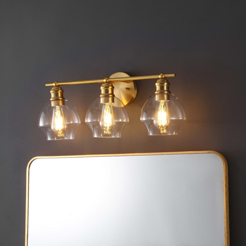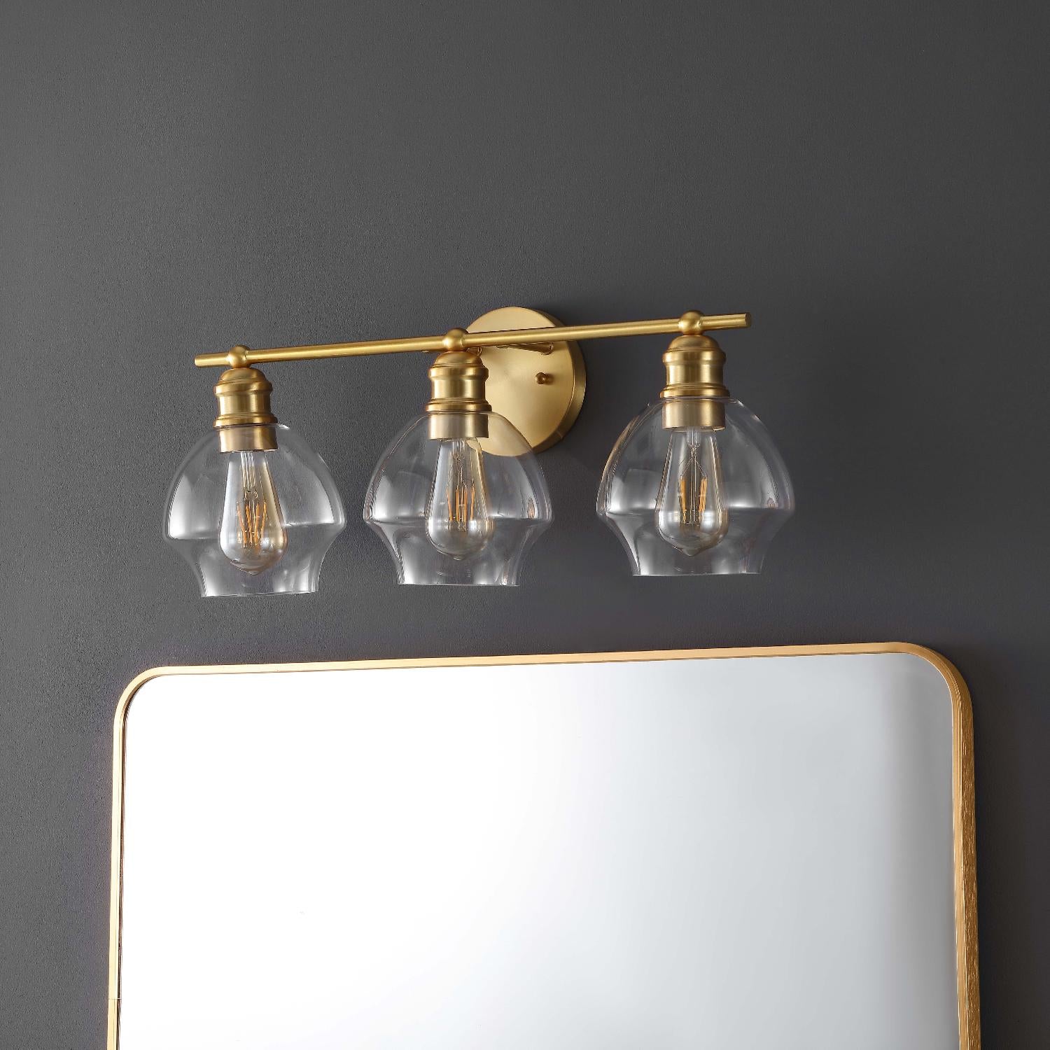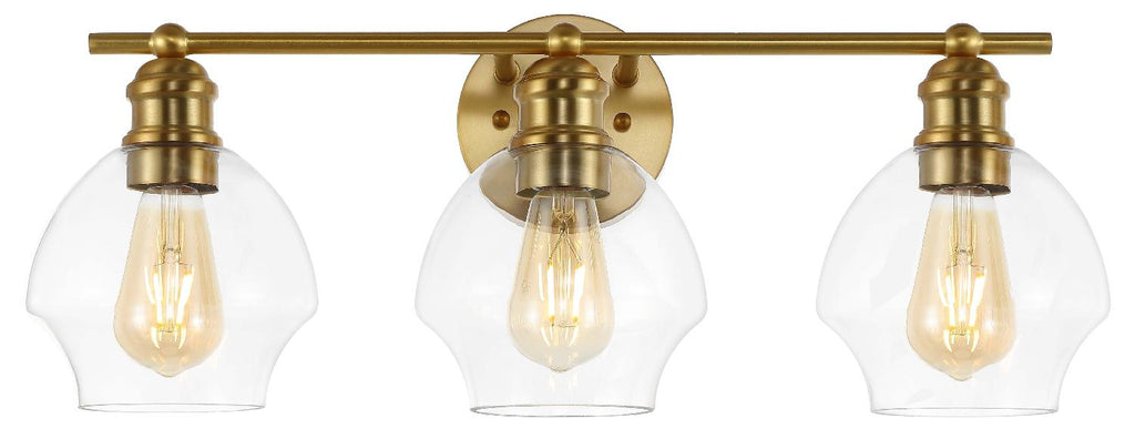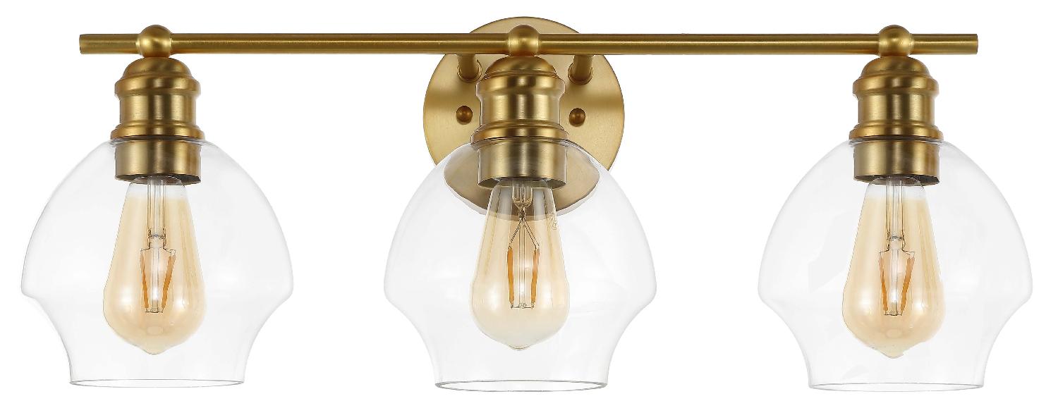 Bring a sophisticated touch of luxury to your home with our Mylsa wall sconce. With fresh modern lines and notes from tradition, our wall sconce features graceful and eye-catching shades. It adorns a sophisticated combination of clear glass and gold hardware to make a polished and refined statement. Each stunning glass shade creates a beautiful display of the bulb to deliver a warm and ambient glow. Our wall sconce linearly aligns 3 lights to offer illumination and visual interest in a hallway, or over a vanity mirror, kitchen sink, or bookcase.