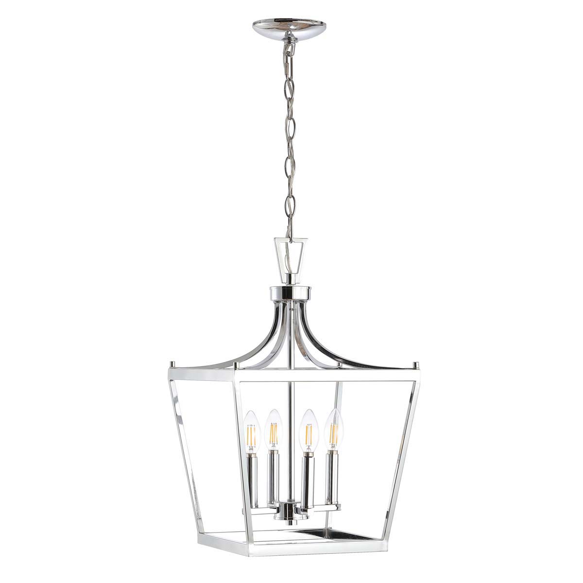 Designed with style and substance, this classic pagoda style 4 light pendant elevates any interior with its new spin on the traditional lantern. The chrome finish highlights its metal craftsmanship, gracious curves, and suspended interior lights.