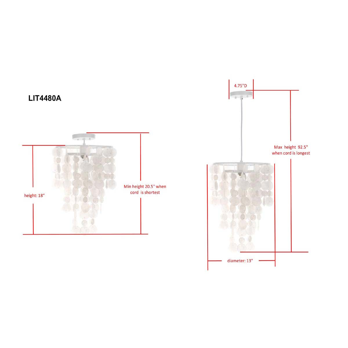 Safavieh Pearl Capiz 1 Light 13 Inch Dia Pendant-White