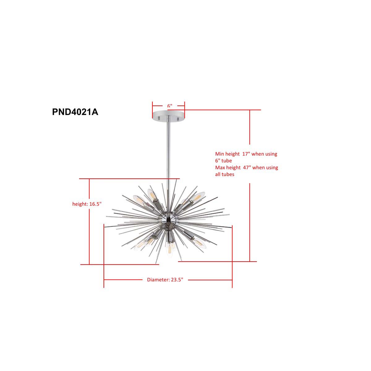 Inspired by retro style, this contemporary pendant is a modern treasure. Designed for the dining room or living room, its shimmering silver finish illuminates its pairing of a sunburst sculpture with bold Sputnik style lights.