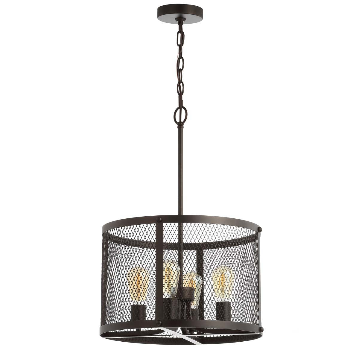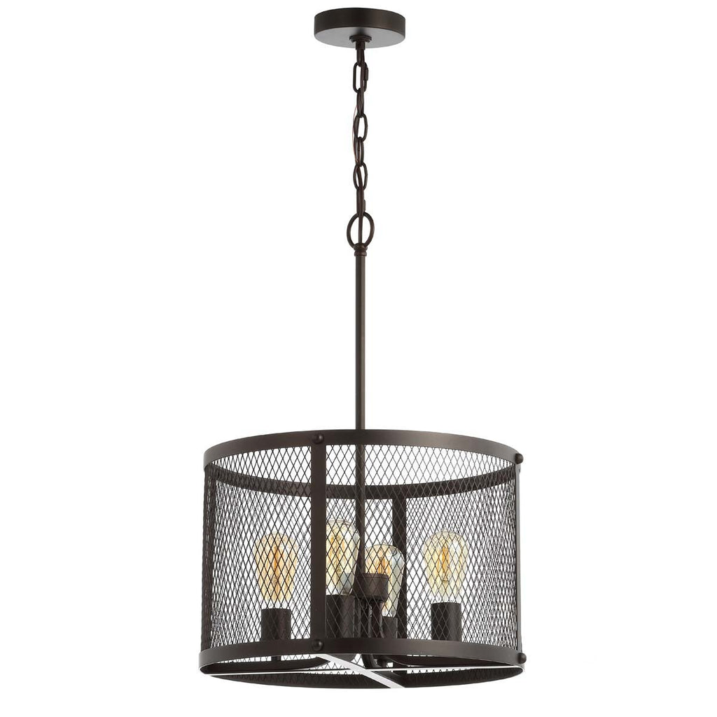 Add depth and drama to the living room or entryway with this contemporary pendant light. Its chic industrial design features a metal shade with modern cut out pattern that diffuses light for an ambient glow. Its classic dark grey finish blends with any décor.