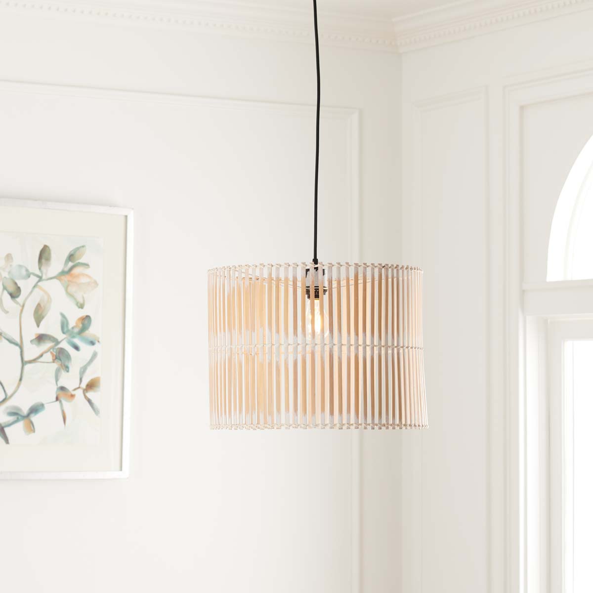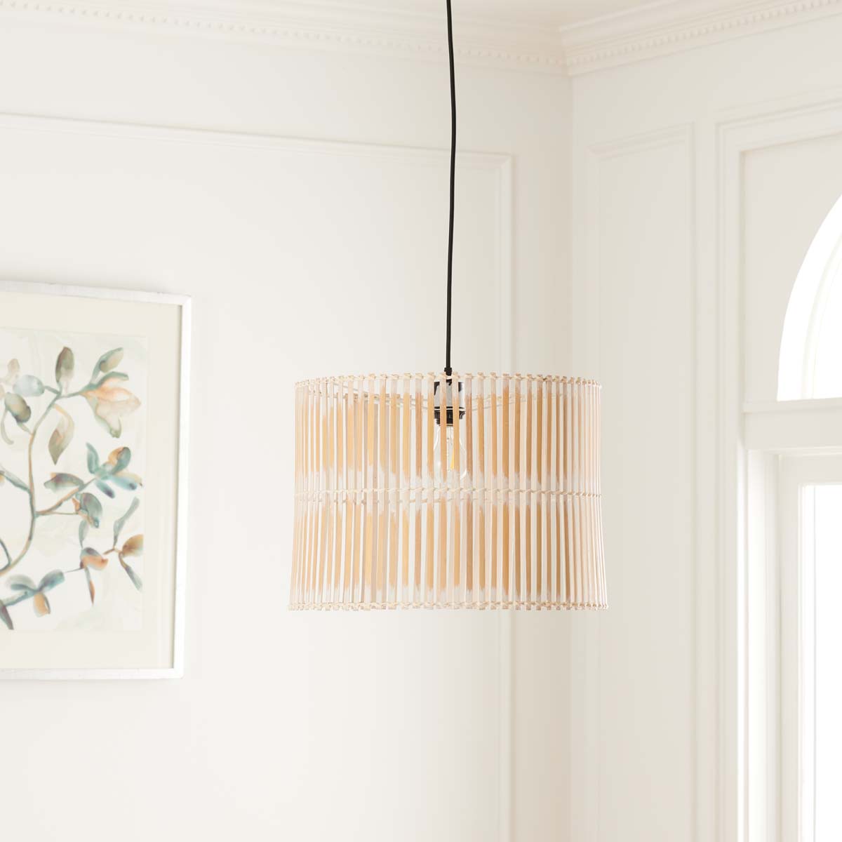 Add a dose of warmth and character to your home with our Valley pendant light. A modern drum shade is upgraded with a light and airy bamboo framework. Adorned in a versatile white washed color, our pendant light brings warmth and detail to any corner. Both durable and eco-friendly, the pendant light lends a comforting glow to a reading nook, dining area, living room, or any space that needs a relaxed and breezy touch.