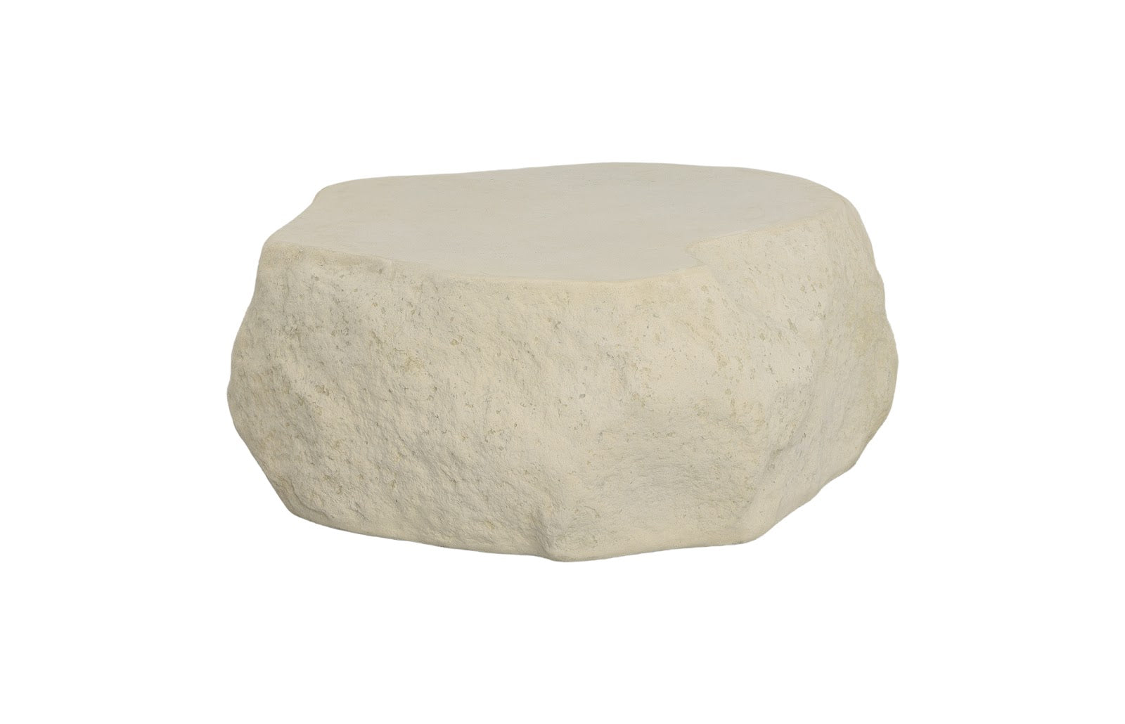 The Small Quarry Coffee Table offers the perfect blend of organic shape and modern materials. Our Roman Stone finish is created with a resin and crushed stone composite which lends an authenticity of a natural boulder without the weight. Its rocky shape and uneven edges add a touch of rustic charm, while the composite ensures its durability and lightweight. Whether used as a statement piece or simply for functionality, the Quarry Coffee Table is sure to make a bold impact in any home.